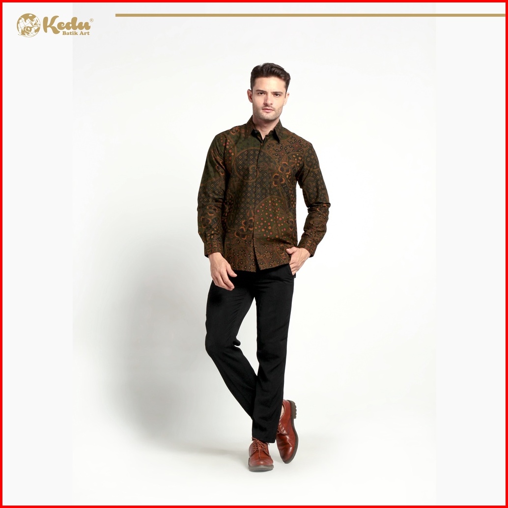 Kedu Batik - Kemeja Batik Katun Lengan Panjang Kotak Jalu Tosca