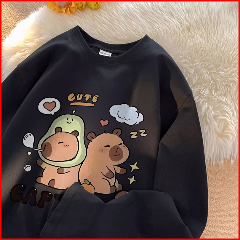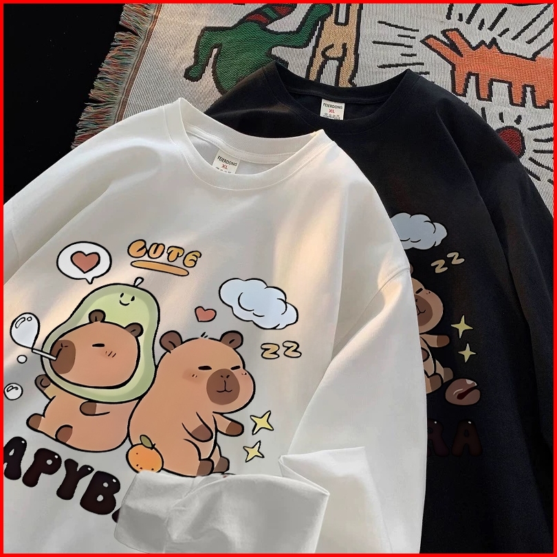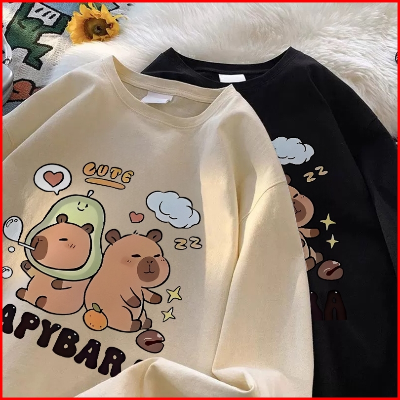 Forteid Atasan Kaos Wanita Oversize Lengan Panjang Korean Style Capybara Baju Kaos Polos Cotton Combed Premium Terbaru I