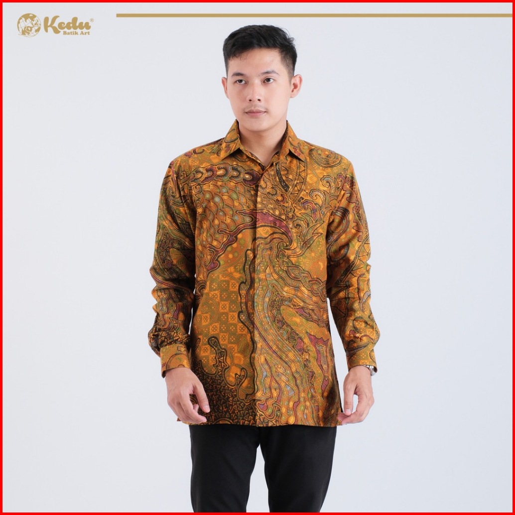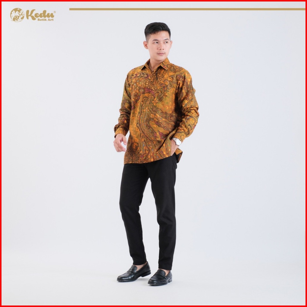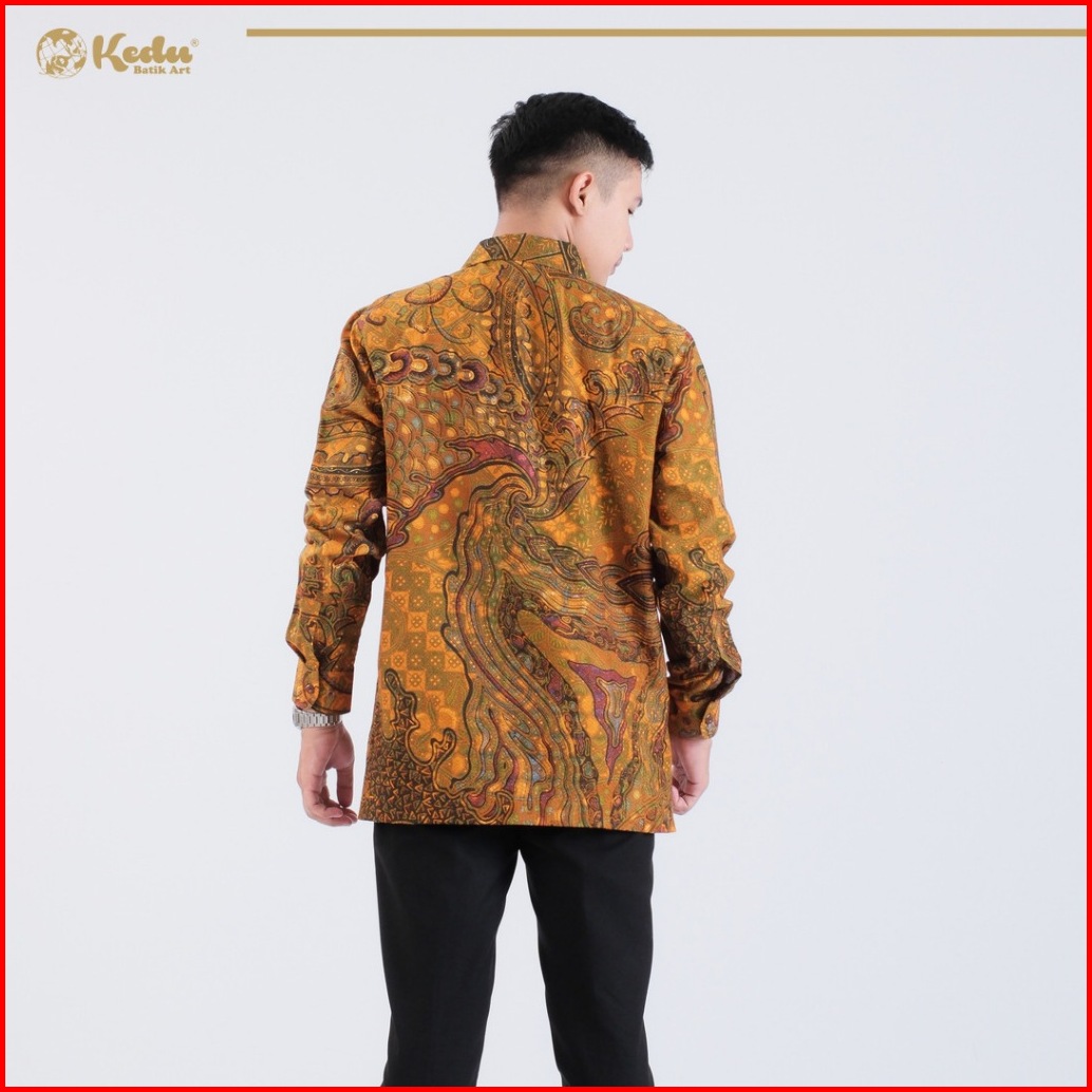 Kedu Batik - Kemeja Batik Pria Dobby Lengan Panjang Sheena Kuning