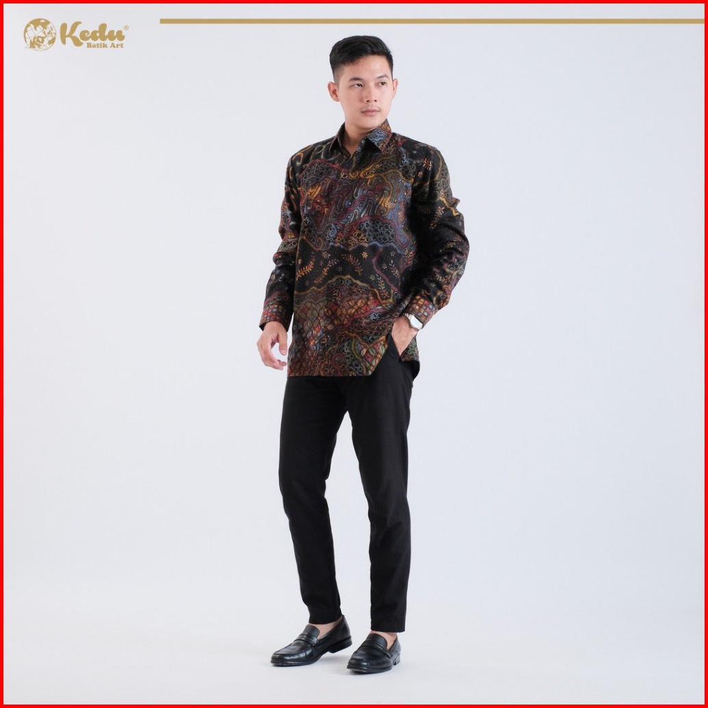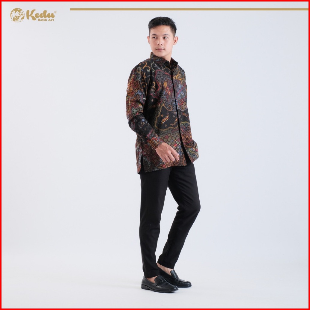 Kedu Batik - Kemeja Batik Pria Dobby Lengan Panjang Keenan Hitam