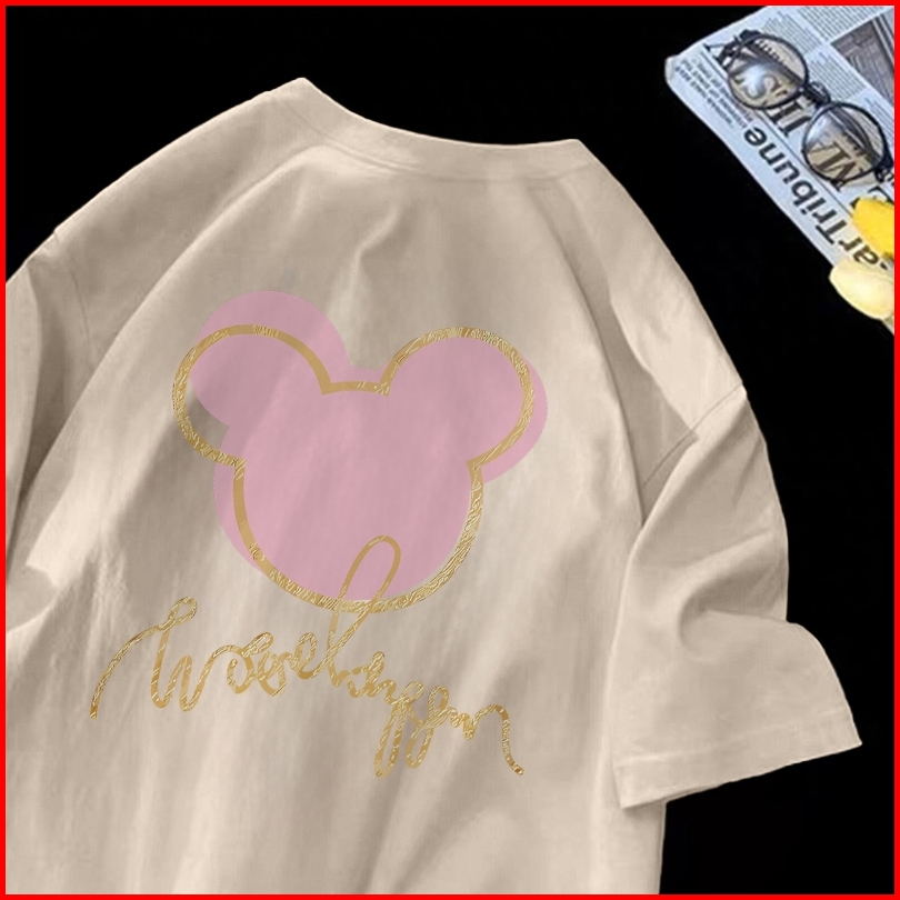 Forteid T-shirt Lengan Pendek Baju Kaos Oversize Wanita Baju Kaus Wanita Korea Baju Atasan Wanita Terbaru Pola Mickey Mo