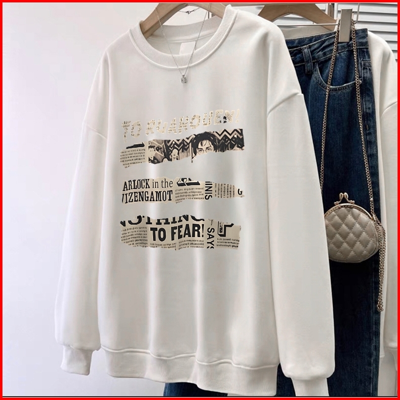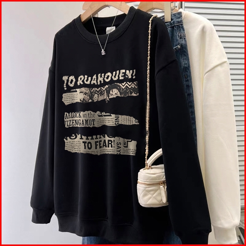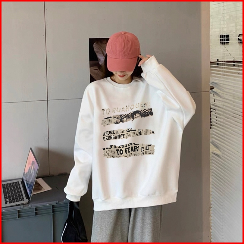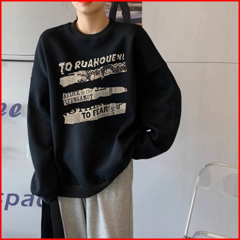 Forteid Sweater Lengan Panjang Oversize Street Style Korean Style Switer Wanita Oversize Cetakan Antik Korean Style Swea