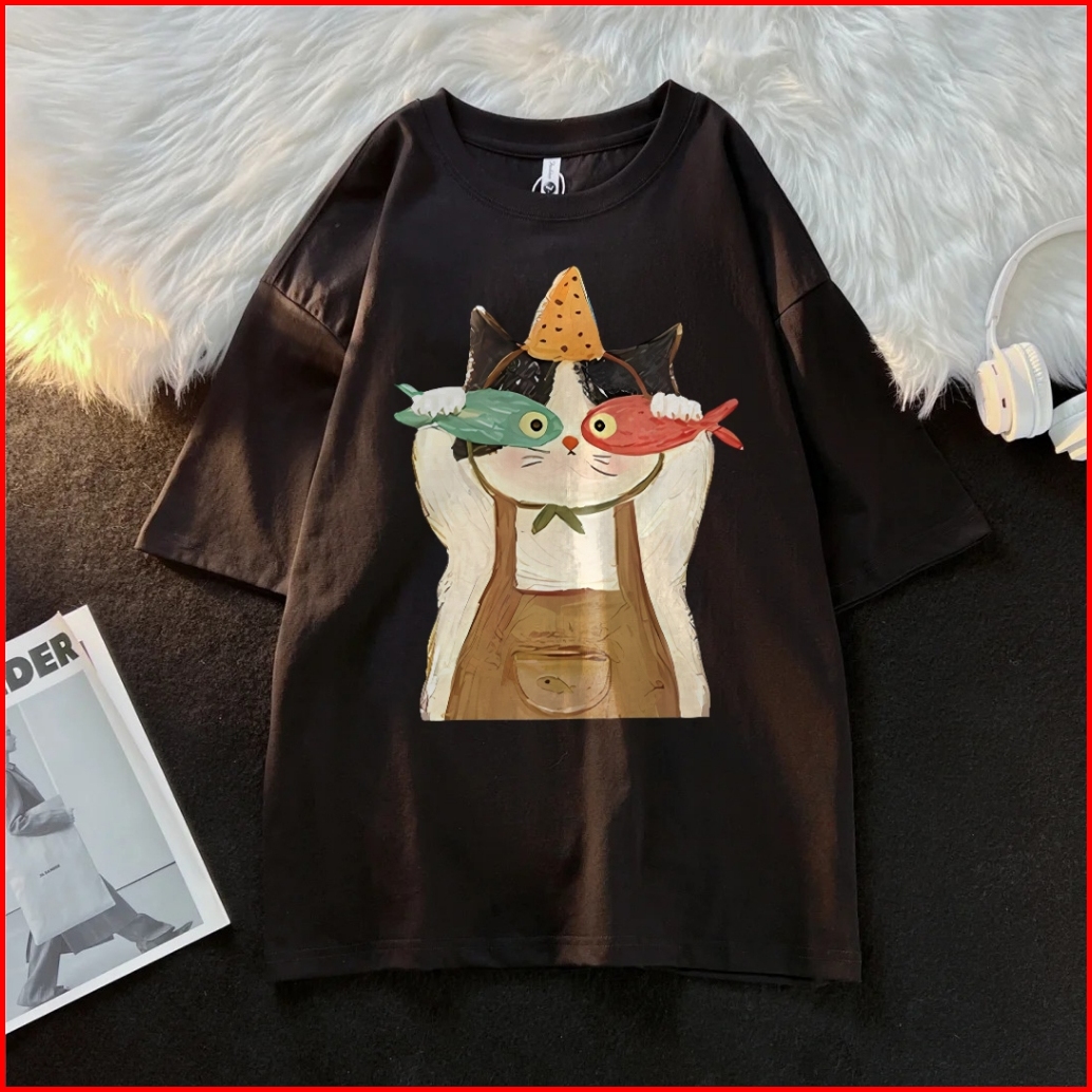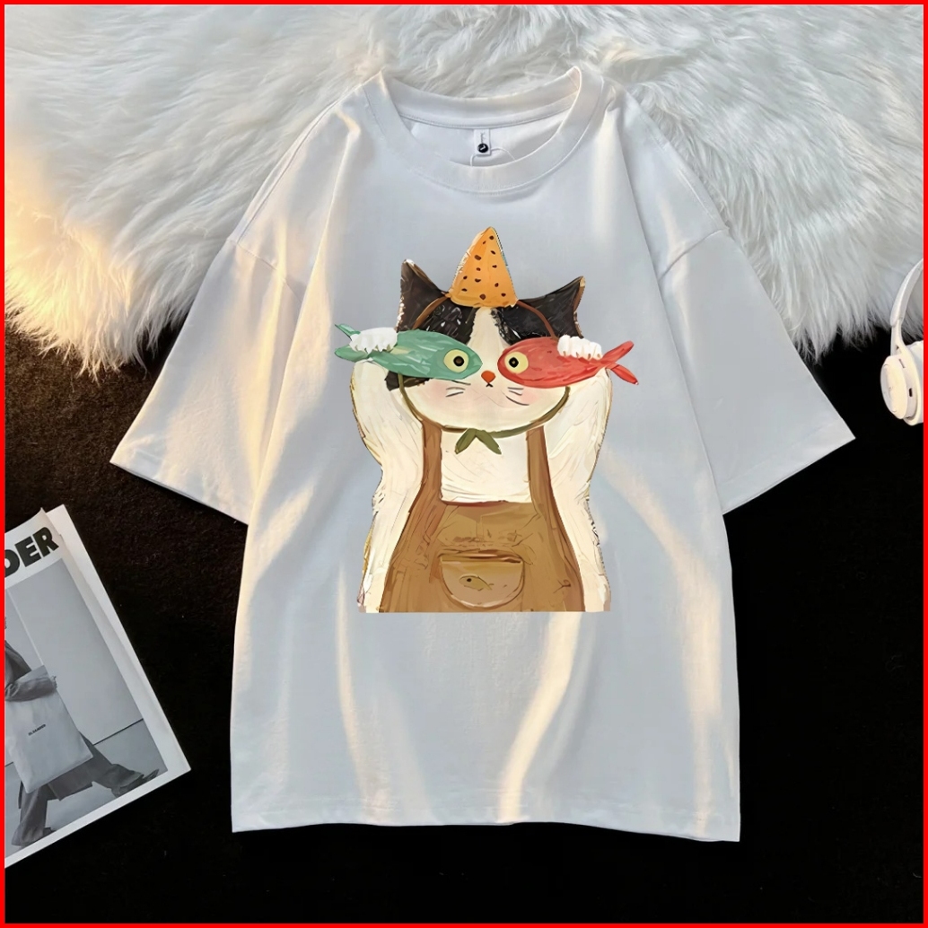 Forteid T-shirt Lengan Pendek Baju Kaos Oversize Wanita Baju Kaus Wanita Korea Baju Atasan Wanita Terbaru Pola Anak Kuci