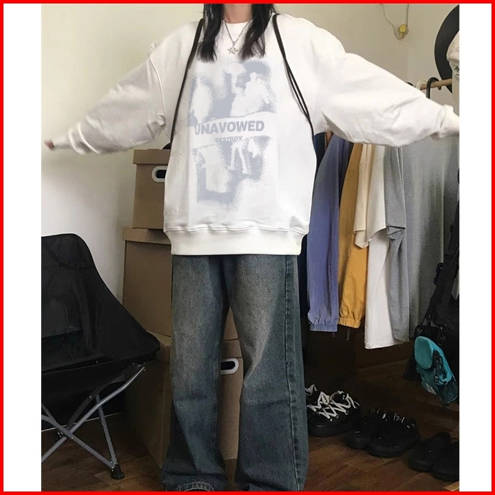 Forteid Sweater Lengan Panjang Oversized Street Style Korean Style Switer Wanita Oversize Pencetakan Tanda Air Korea Kor