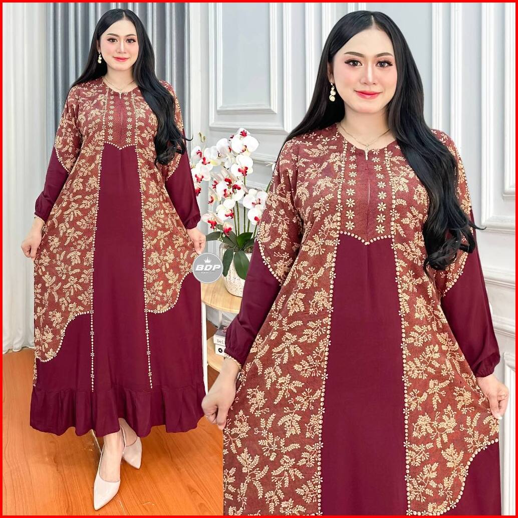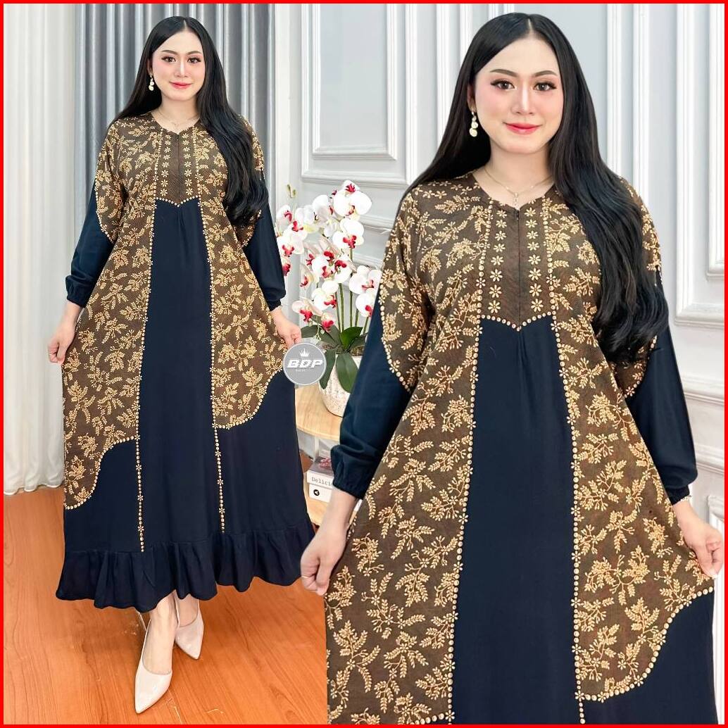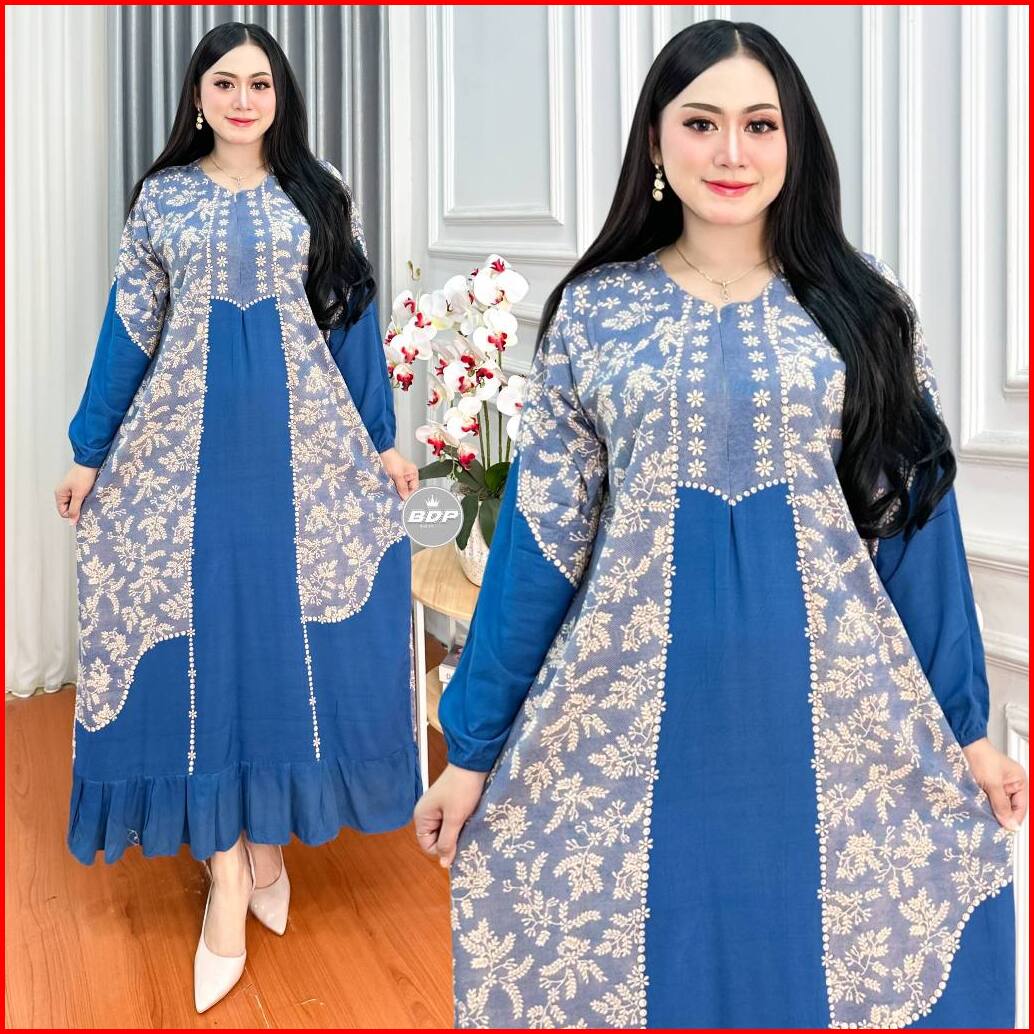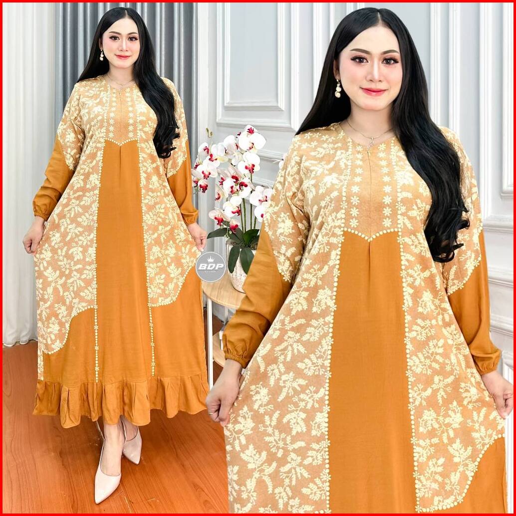 Dianputri - Dress Gamis Wanita Motif Anggun Rayon Rampel Busui Lengan Panjang Homedress Daster Adem
