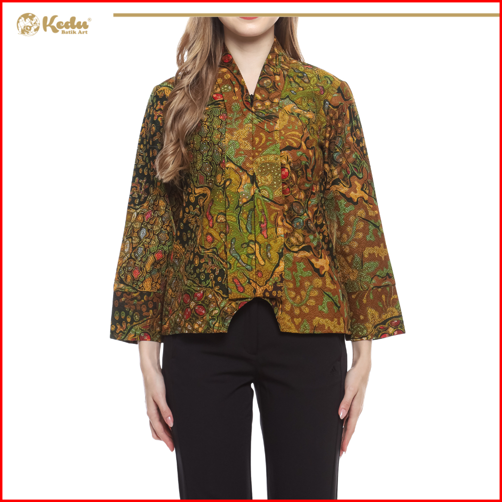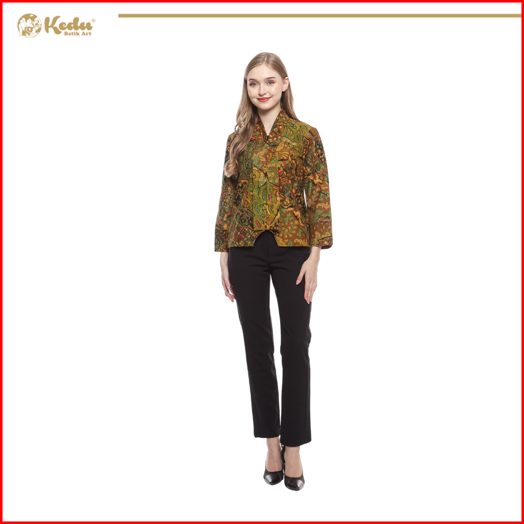 Kedu Batik Blouse Batik Wanita Dobby Aksara Kuning Blouse Bulu Wanita Formal
