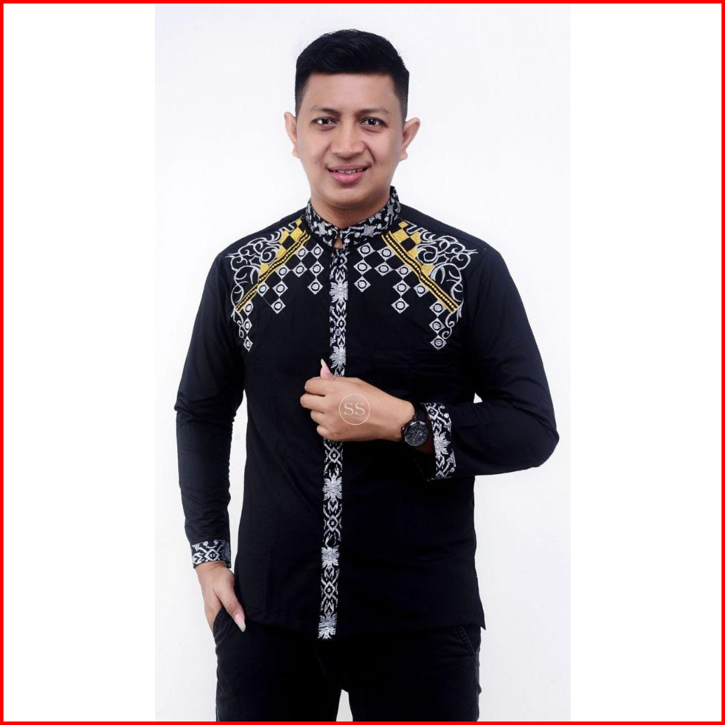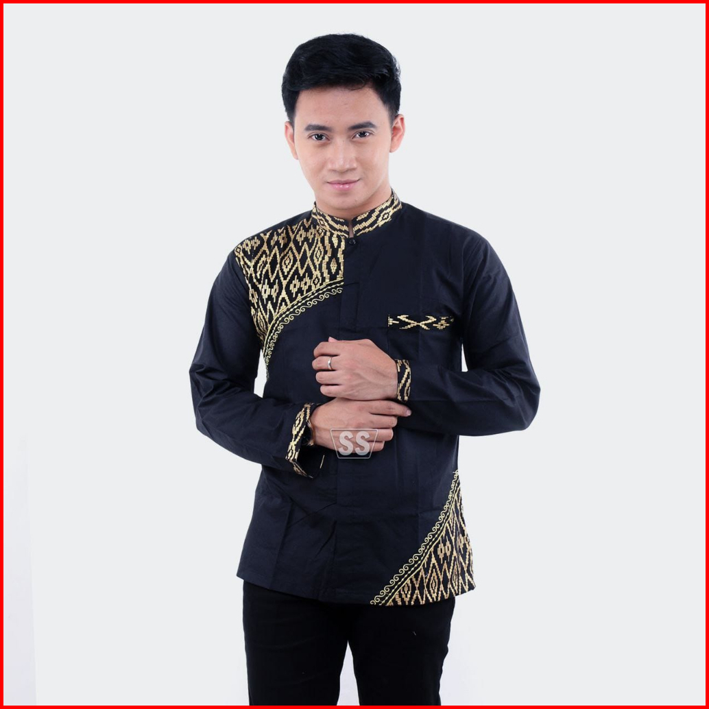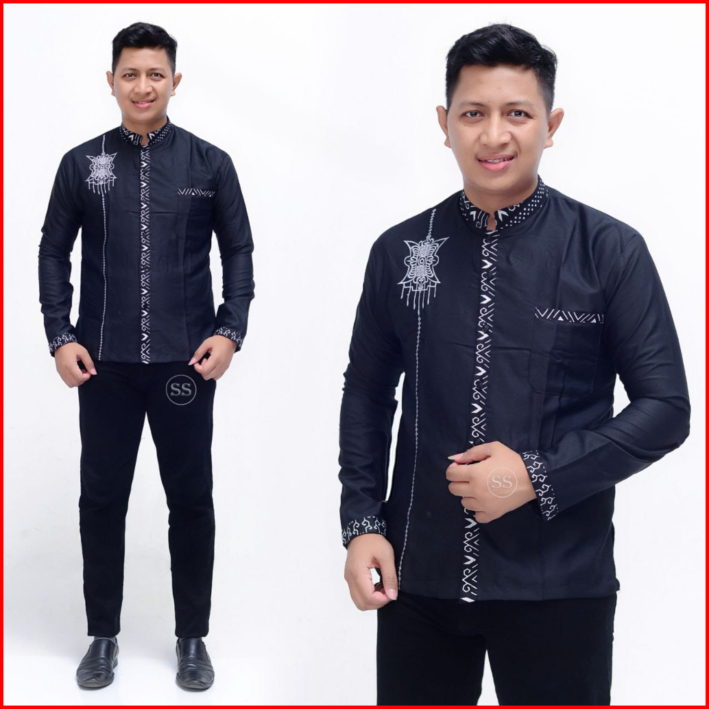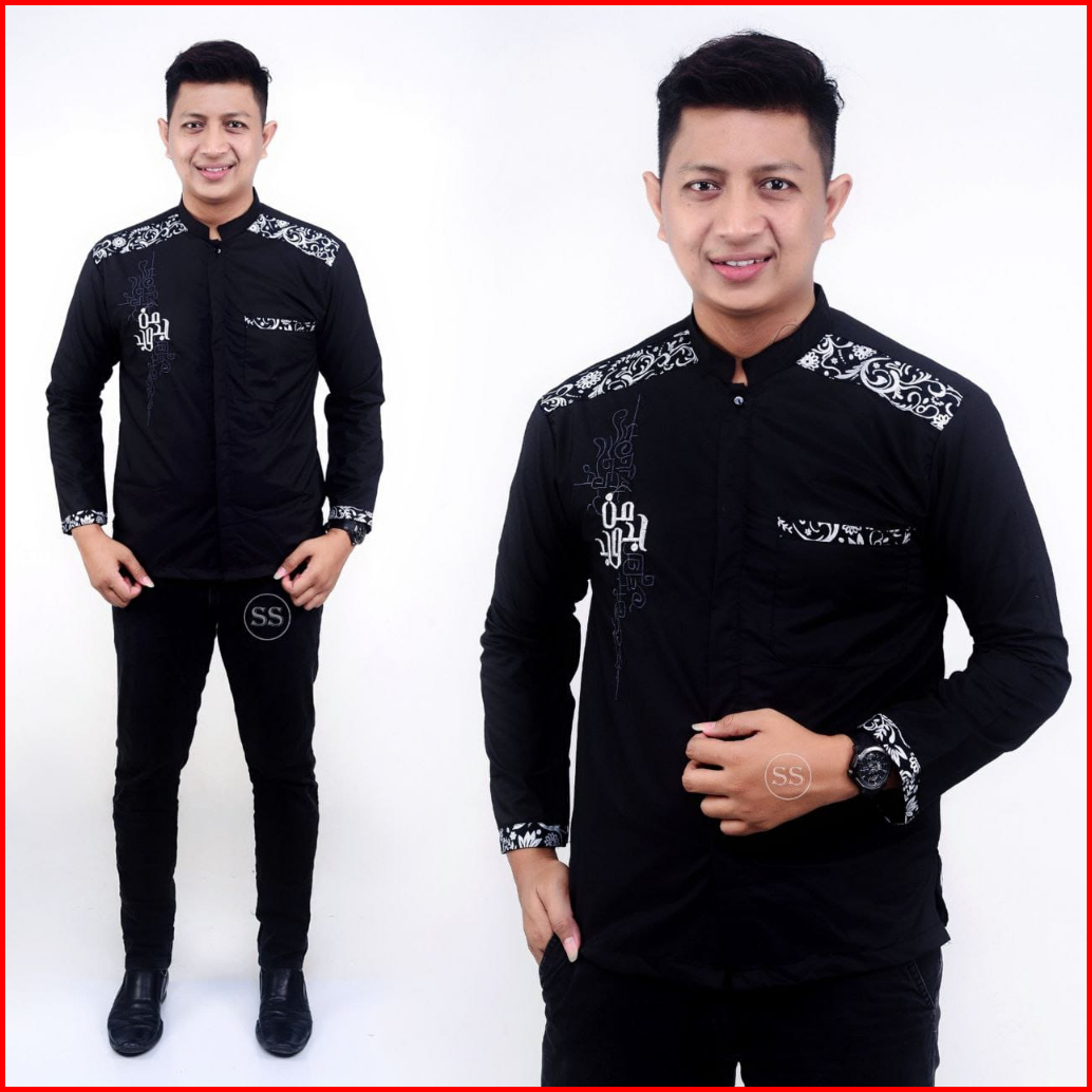 Nazilla Batik - Baju Koko Muslim Hitam Kombinasi Batik Pria Lengan Panjang Terbaru