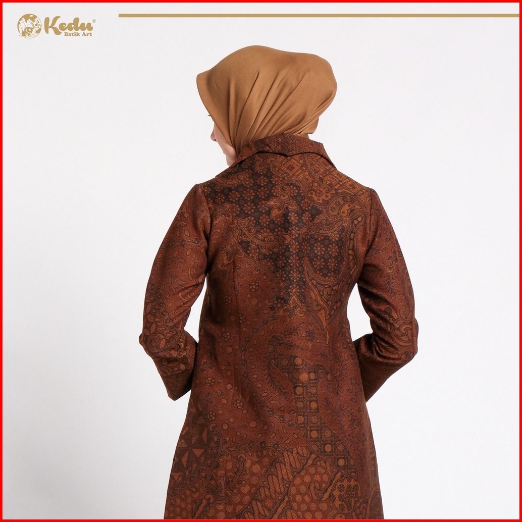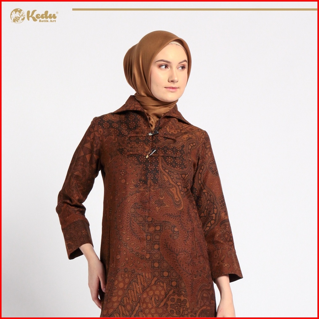 Kedu Batik - Tunik Batik Dobby Gading Terompet Coklat Tunik Wanita Formal
