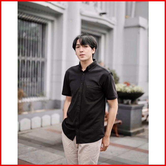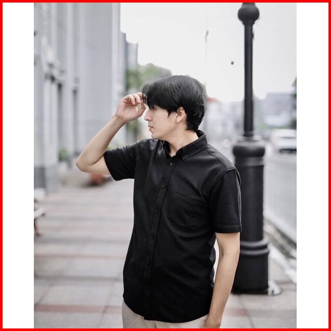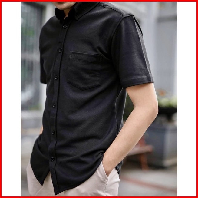 Kemeja Pria Polos Lengan Pendek Katun Slim Fit