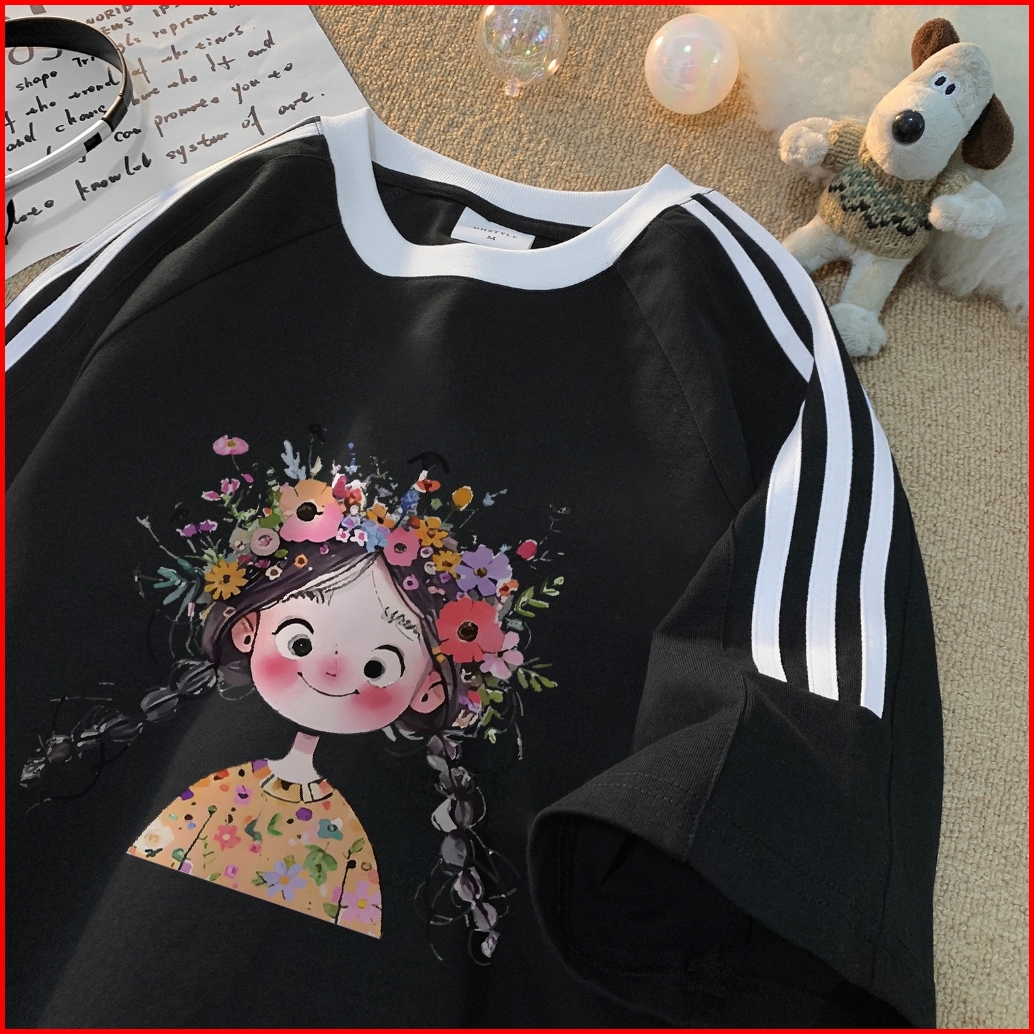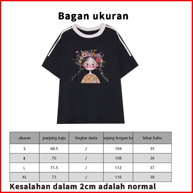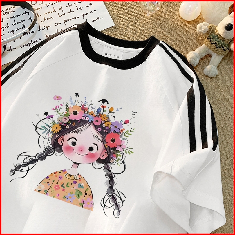 Forteid Cetakan Merek Trendi Retro Baju Oversize Cetak Potret Gadis Lucu Korean Style Kaos Longgar