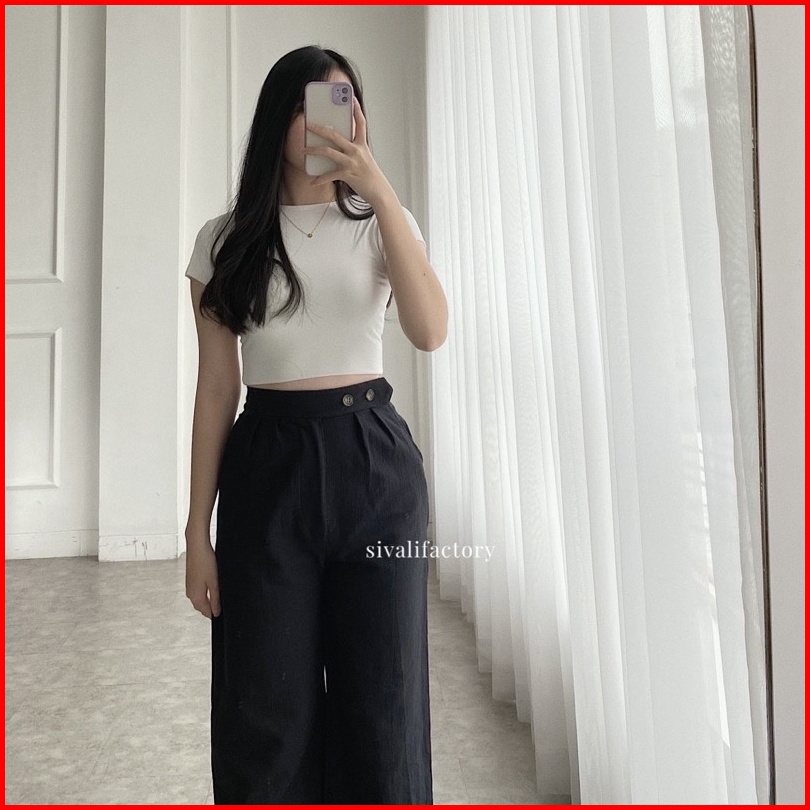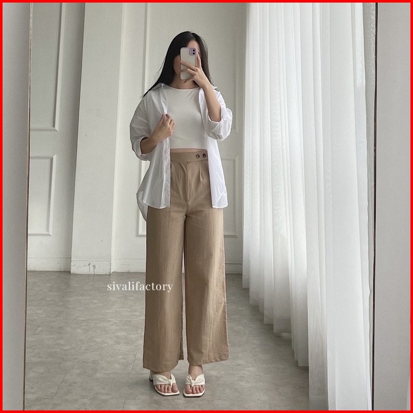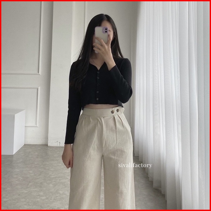 Celana Kulot Linen Highwaist Premium 2240 Side Button - Cullote Pants - Celana Kulot Linen Wanita Four Button Noza