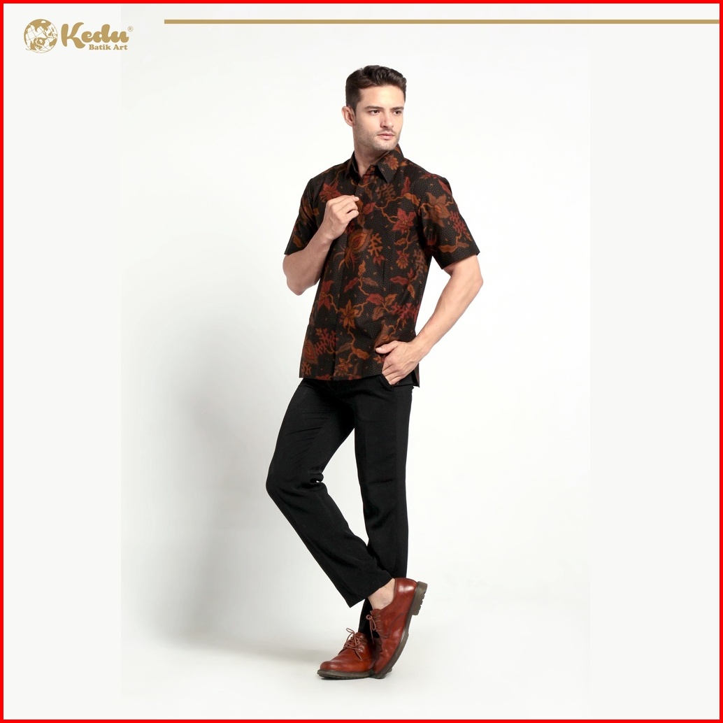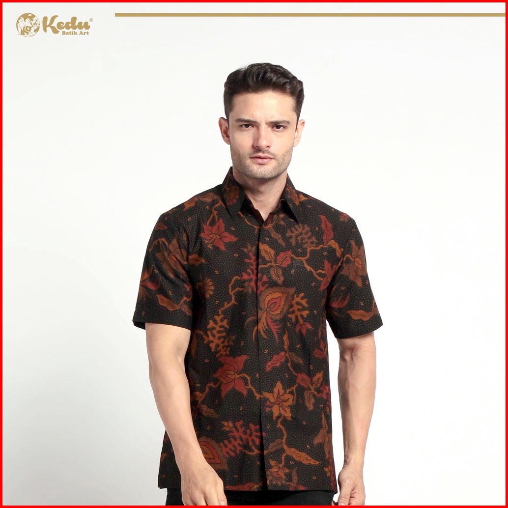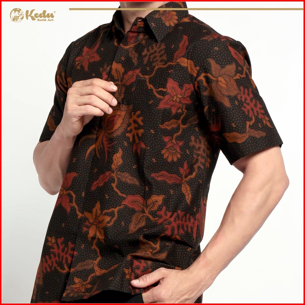 Kedu Batik - Kemeja Batik Katun Lengan Pendek Sotong Hitam Hem Pria Formal