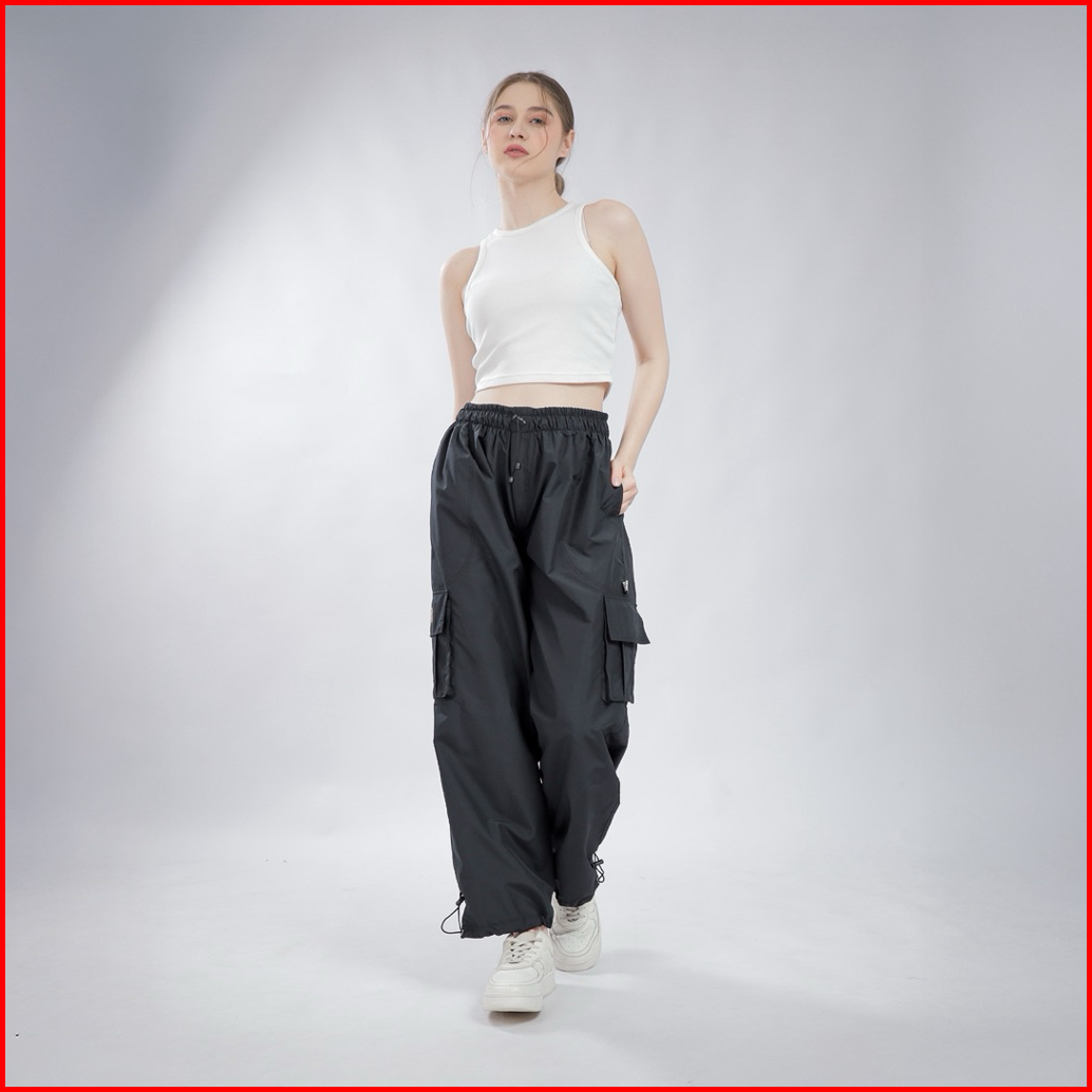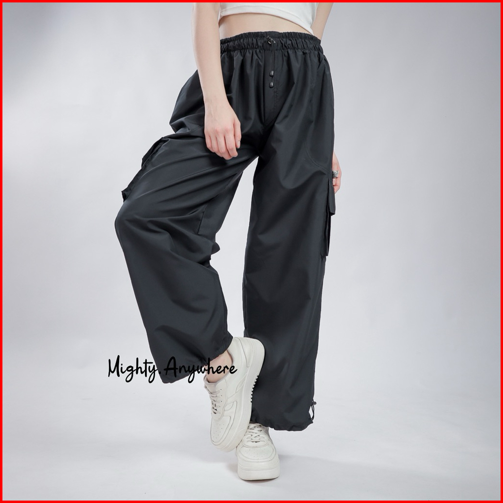 Mght- Celana Cargo Wanita Polos Parasut Waterproof Premium Kargo Panjang