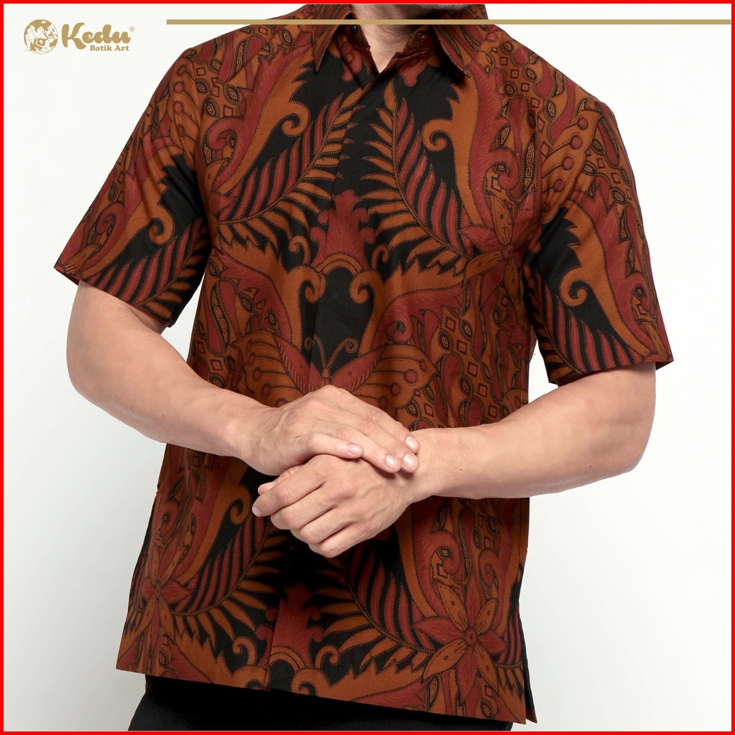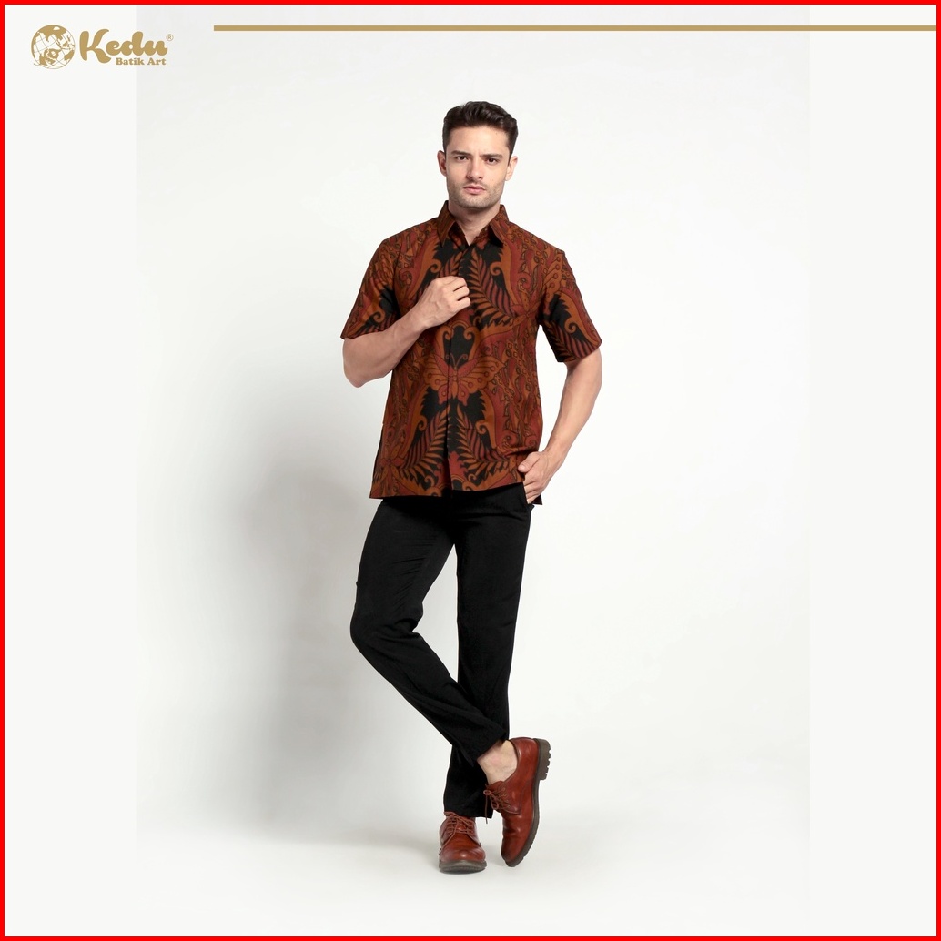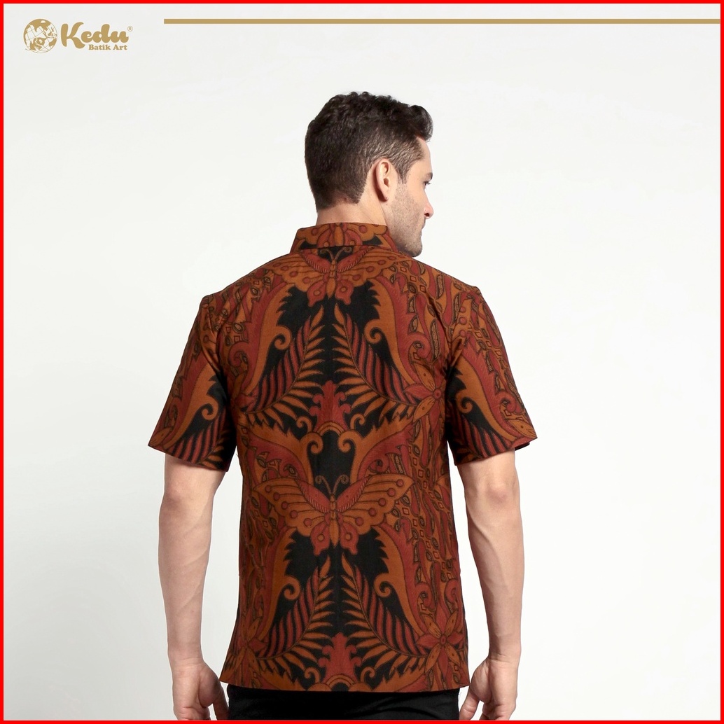 Kedu Batik - Kemeja Batik Katun Lengan Pendek Seno Kupu Hitam Hem Pria Formal