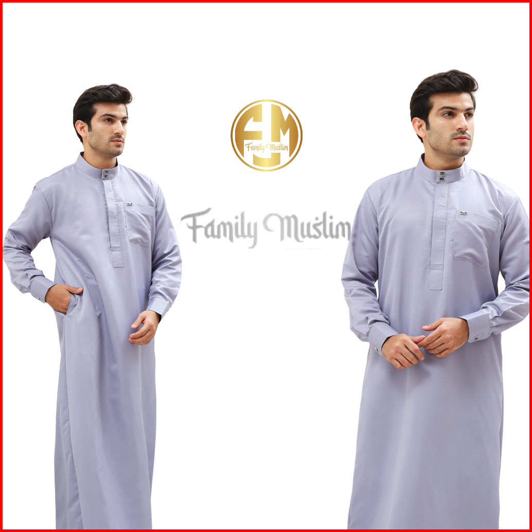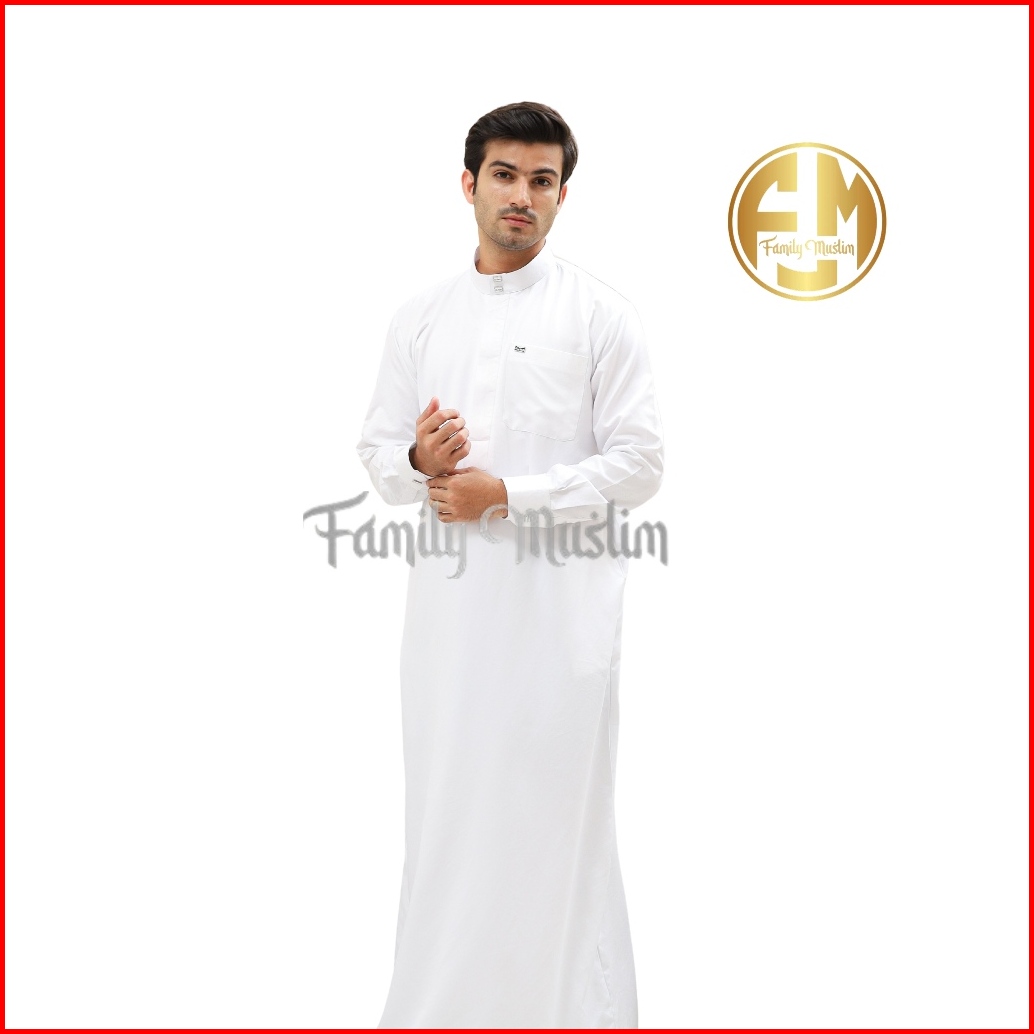 Family Muslim - Jubah Pria Lengan Panjang Slimfit Reseleting Aufar Hitam