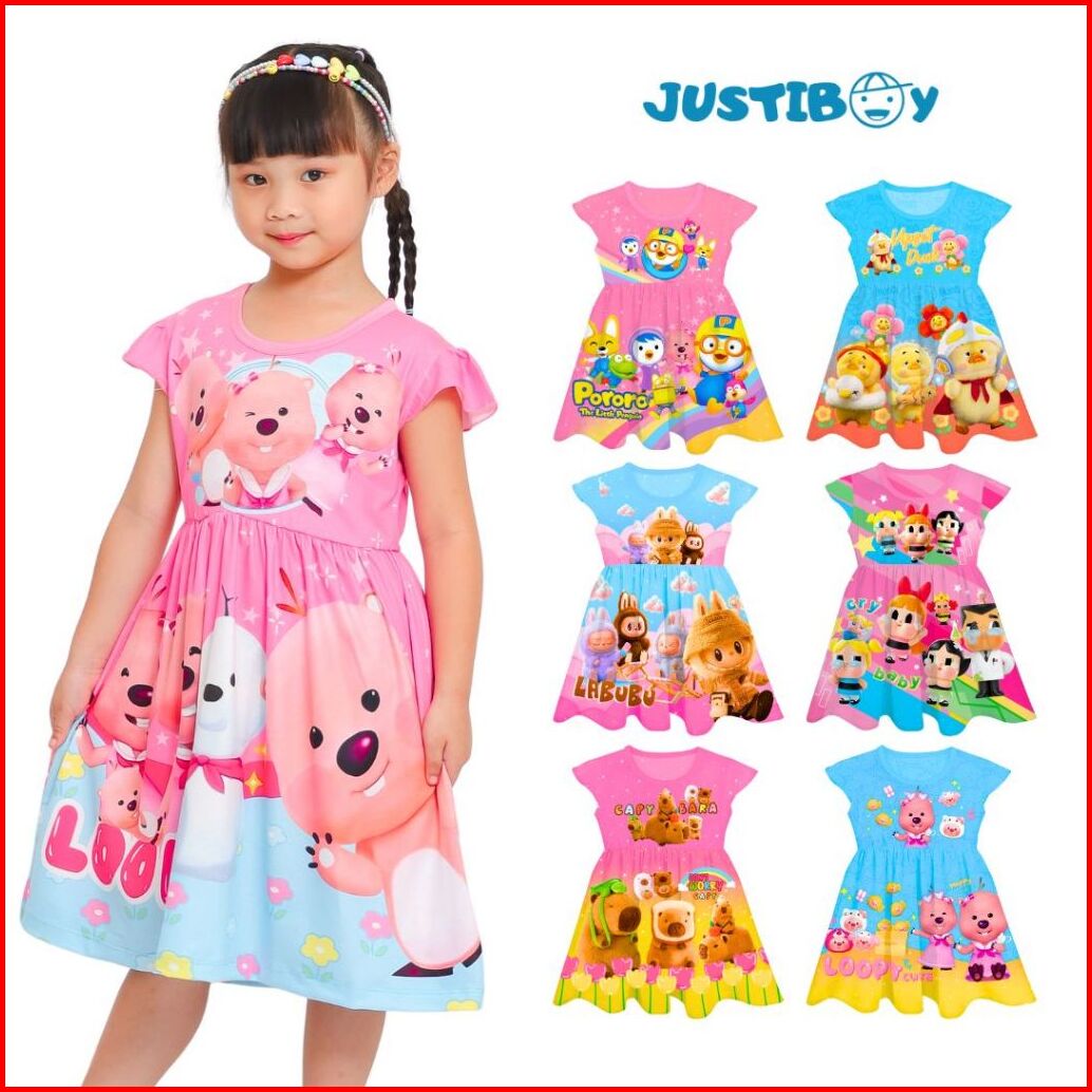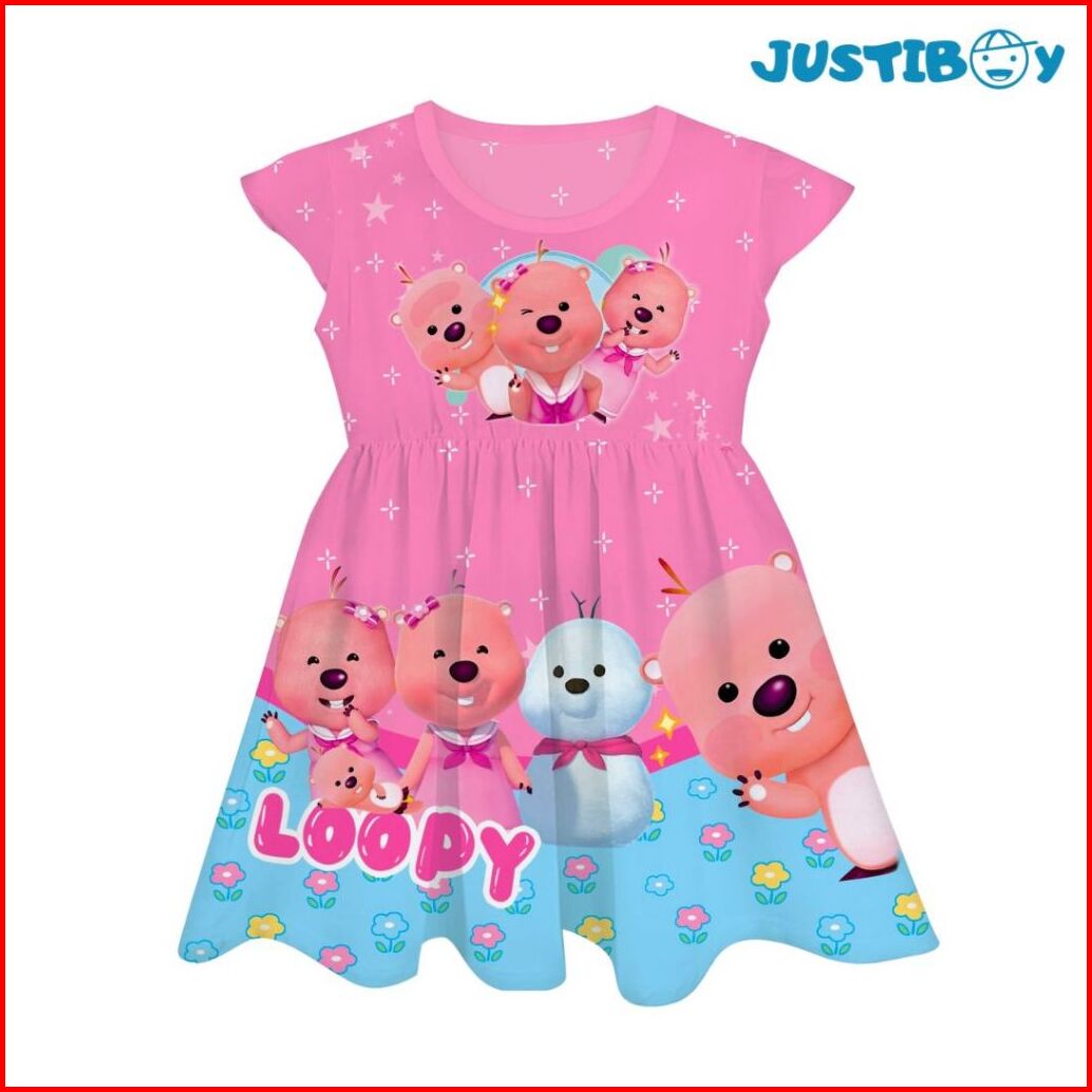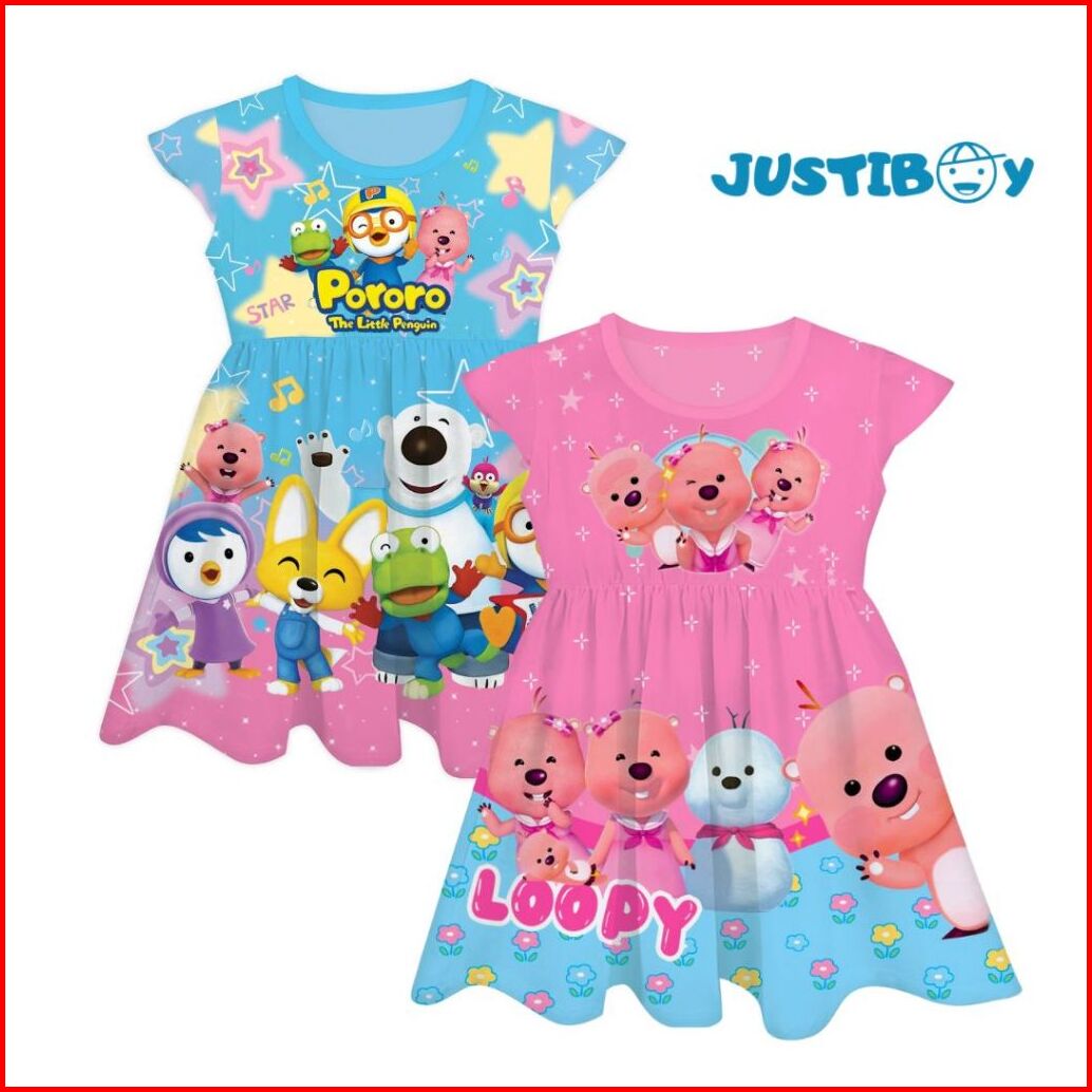 Dress Baju Anak Perempuan Loopy Pororo Full Printing Umur 2 - 9 Tahun Abel