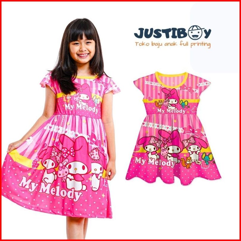 Dress Baju Anak Perempuan My Melody Sanrio Full Printing Umur 2 - 9 Tahun Abel