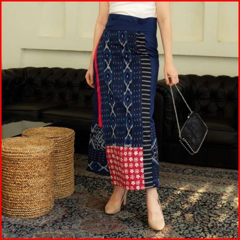 Rok Lipat Tenun Wanita Motif Denim Premium