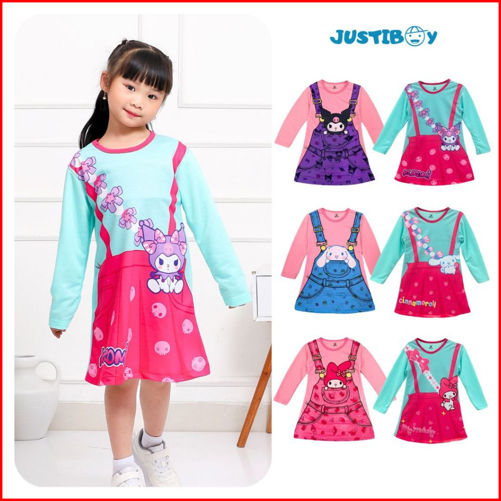 Dress Baju Anak Sanrio Kuromi Melody Cinnamoroll Full Printing Umur 6 - 10 Tahun Kelly