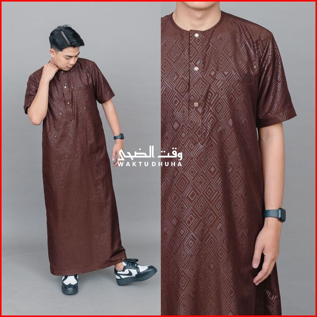 Waktu Dhuha - Gamis Slimfit Cowok Dewasa Jubah Azwar Lengan Pendek Kerah Oblong