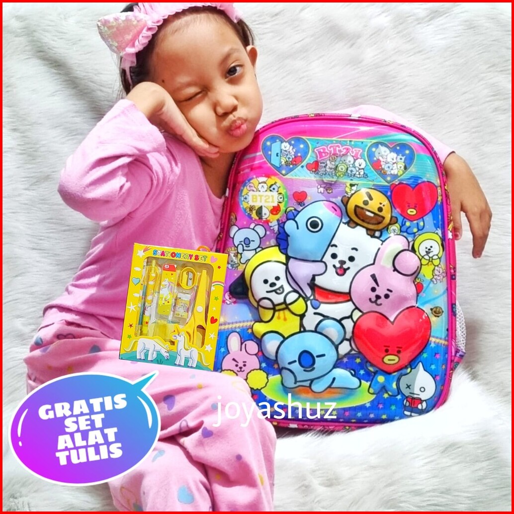 Joyashuz - Tas Anak Perempuan 3 Dimensi Karakter Timbul - Tas Sekolah Gratis Alat Tulis