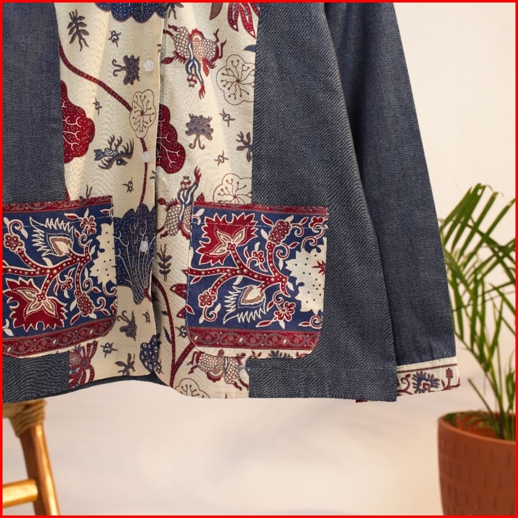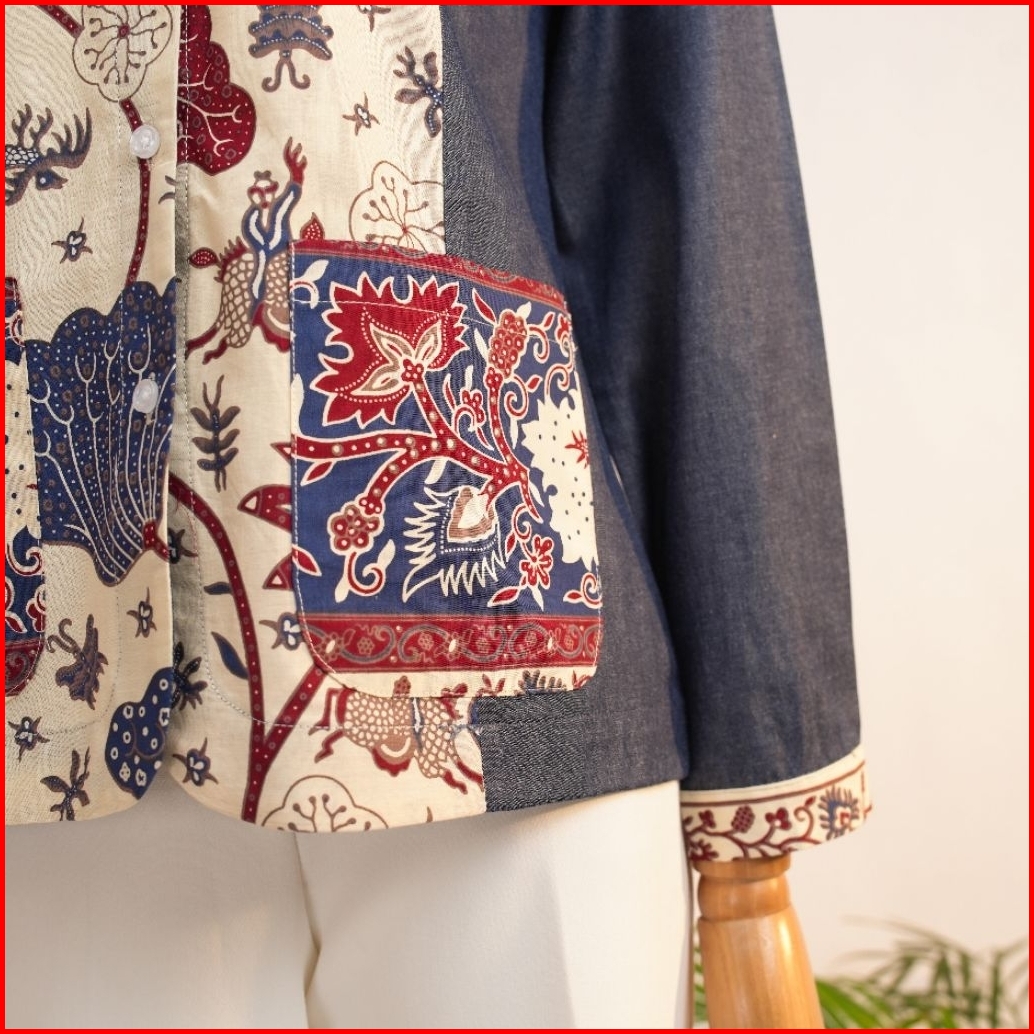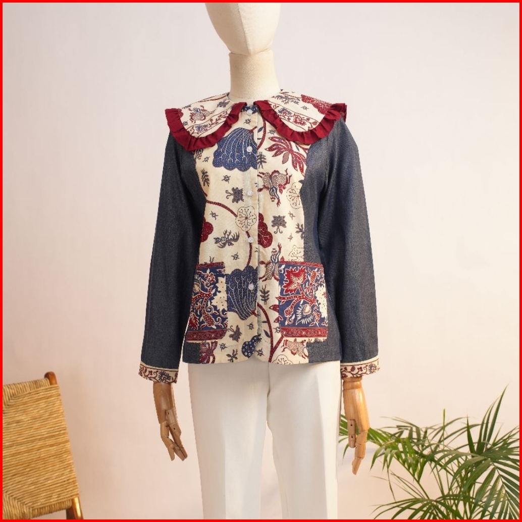 Blouse Atasan Wanita Katun Batik N42 Denim New Dengan Desain Elegan Dan Nyaman Untuk Tampilan Harian