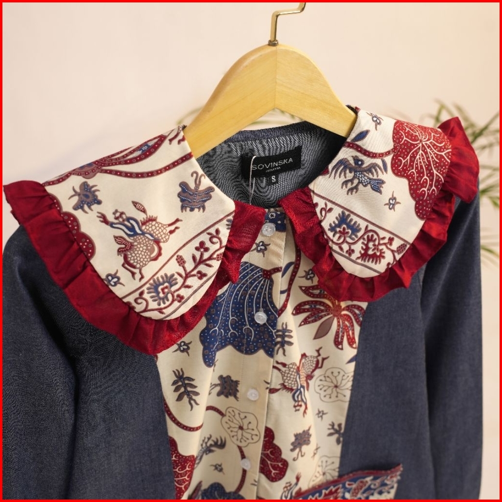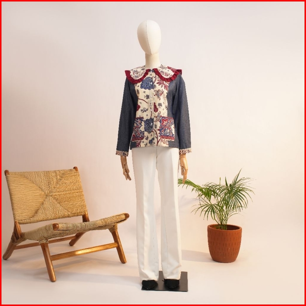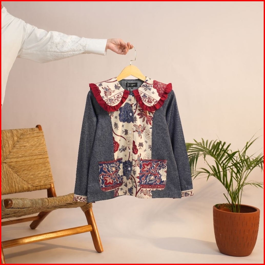 Blouse Atasan Wanita Katun Batik N42 Denim New Dengan Desain Elegan Dan Nyaman Untuk Tampilan Harian