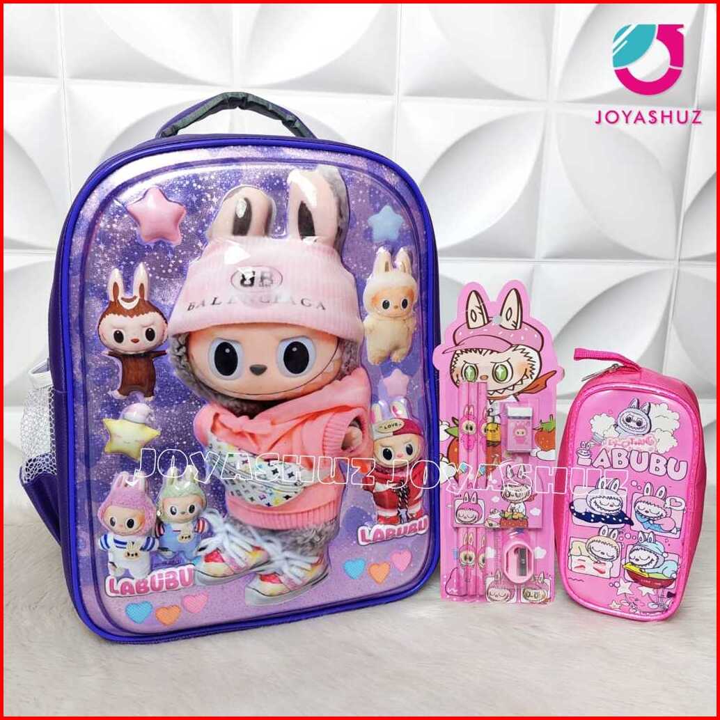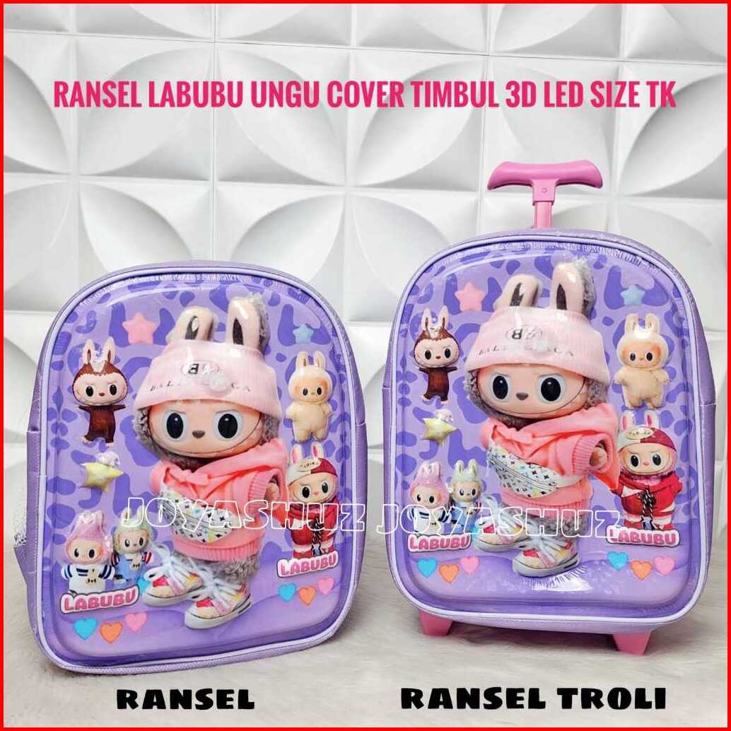 Tas Labubu Troli Anak Tk Gambar 3d Timbul Led Nyala - Tas Sekolah Anak Perempuan Sd - Tas Dorong Labubu Fashion - Tas Tr