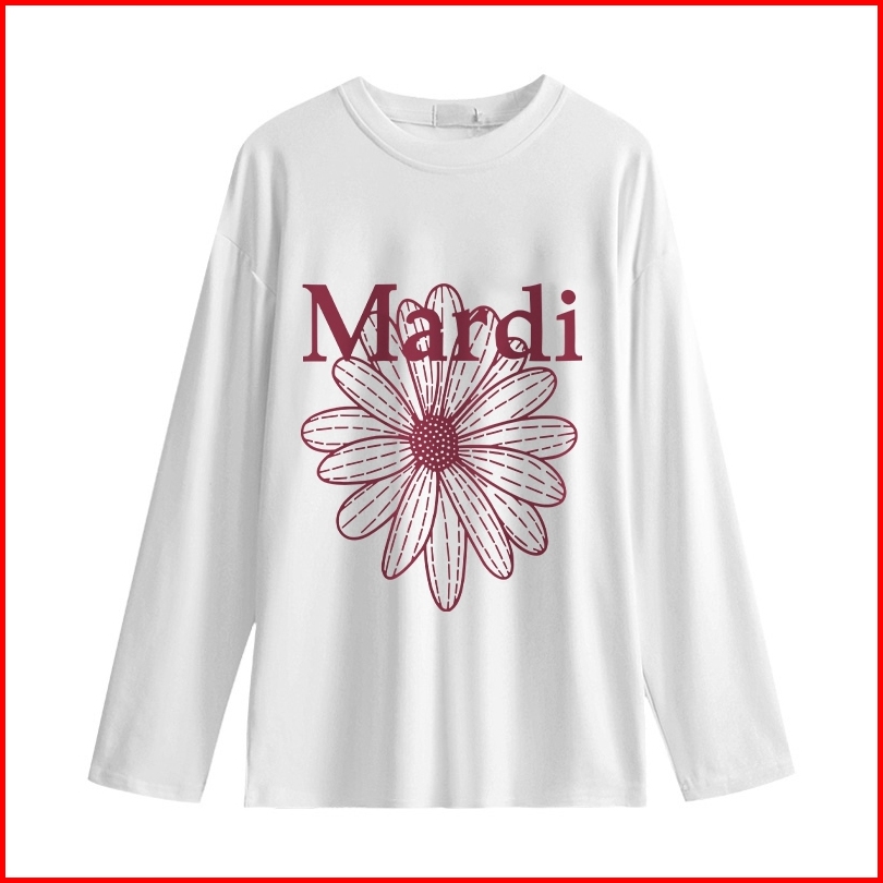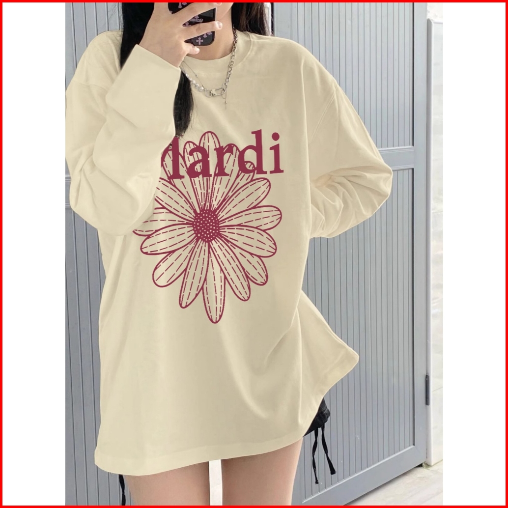 Kaos Oversize Lengan Panjang Wanita Pink Daisy Flowers Print Baju Kaos Lengan Panjang Wanita Terbaru Kekinian Baju Kaos