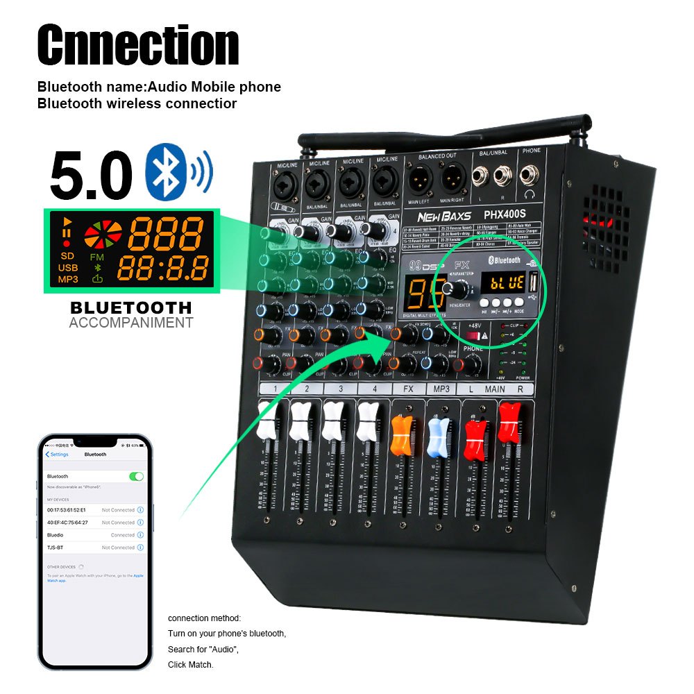 NEW BAXS PHX400S/PHX400 audio mixer Professional 4-channel power amplifier with wireless microphone one to two type-c ch