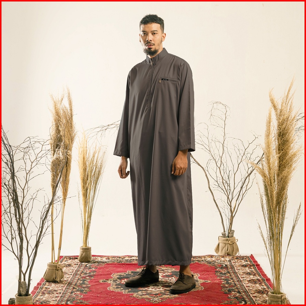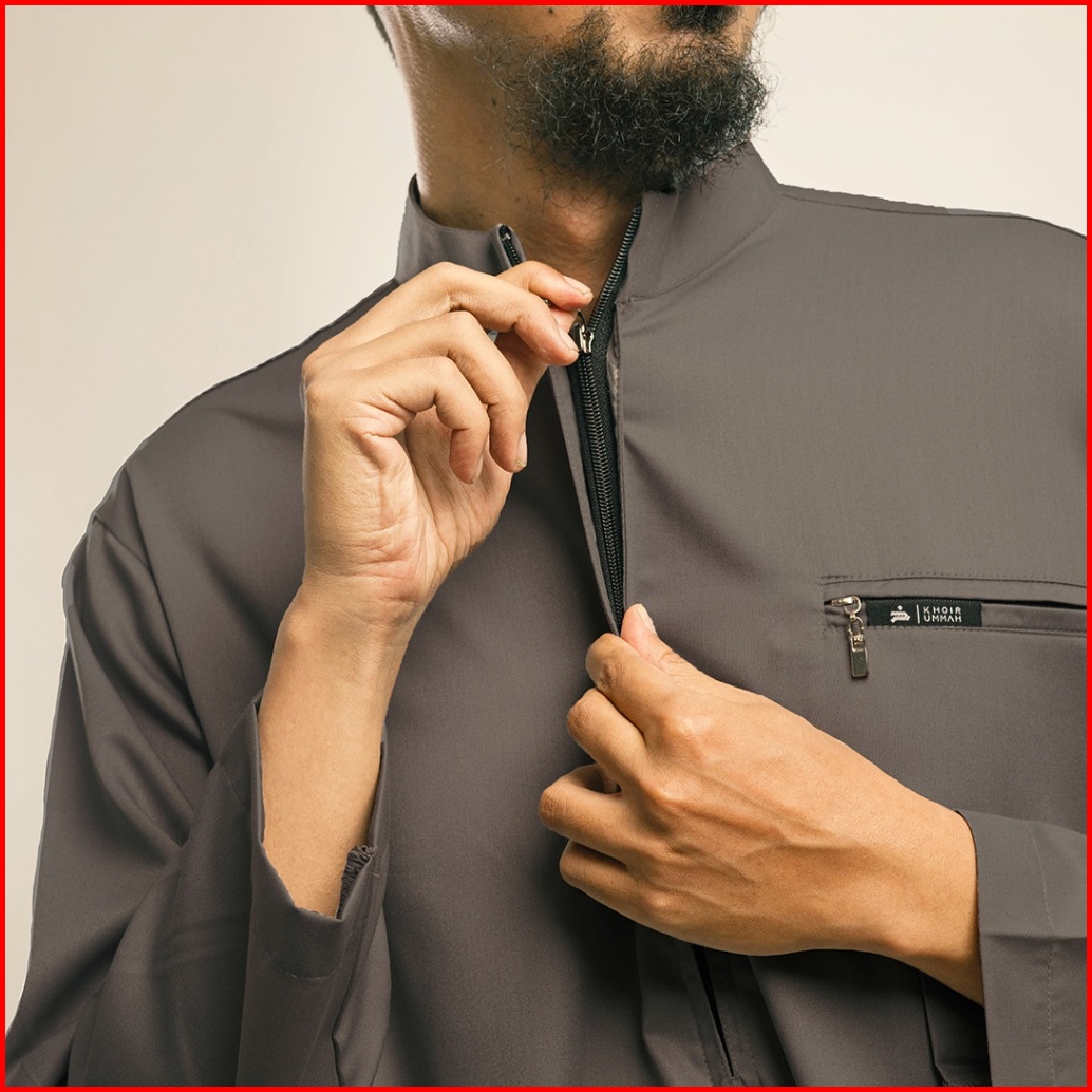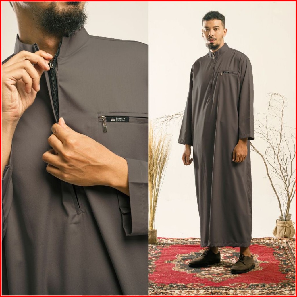 Khoirummah - Jubah Khalifah - Gamis Pria Dewasa Lengan Panjang Half Zipper - Dark Grey