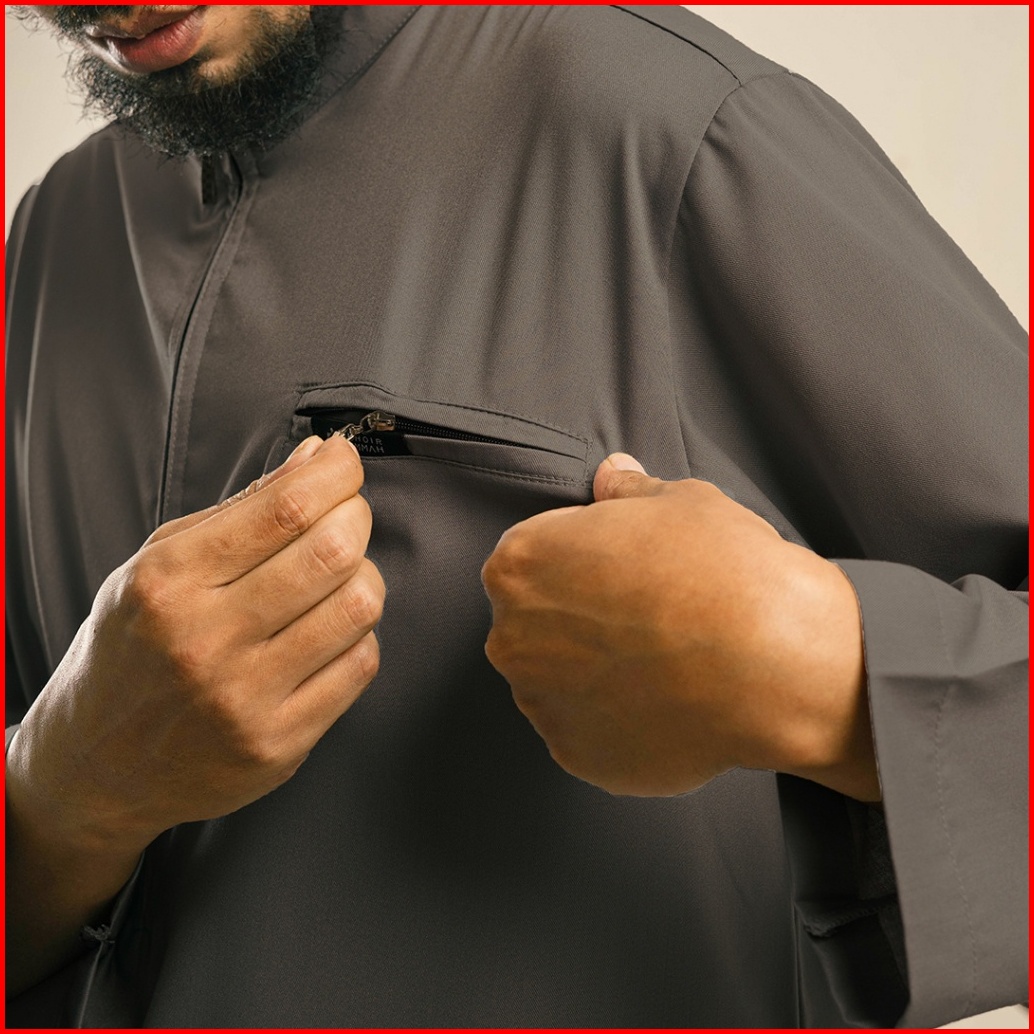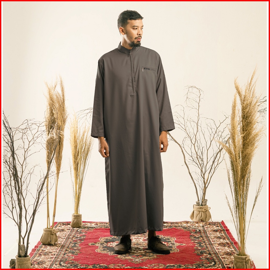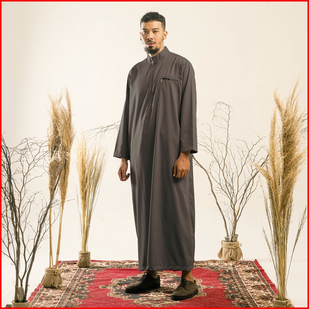 Khoirummah - Jubah Khalifah - Gamis Pria Dewasa Lengan Panjang Half Zipper - Dark Grey