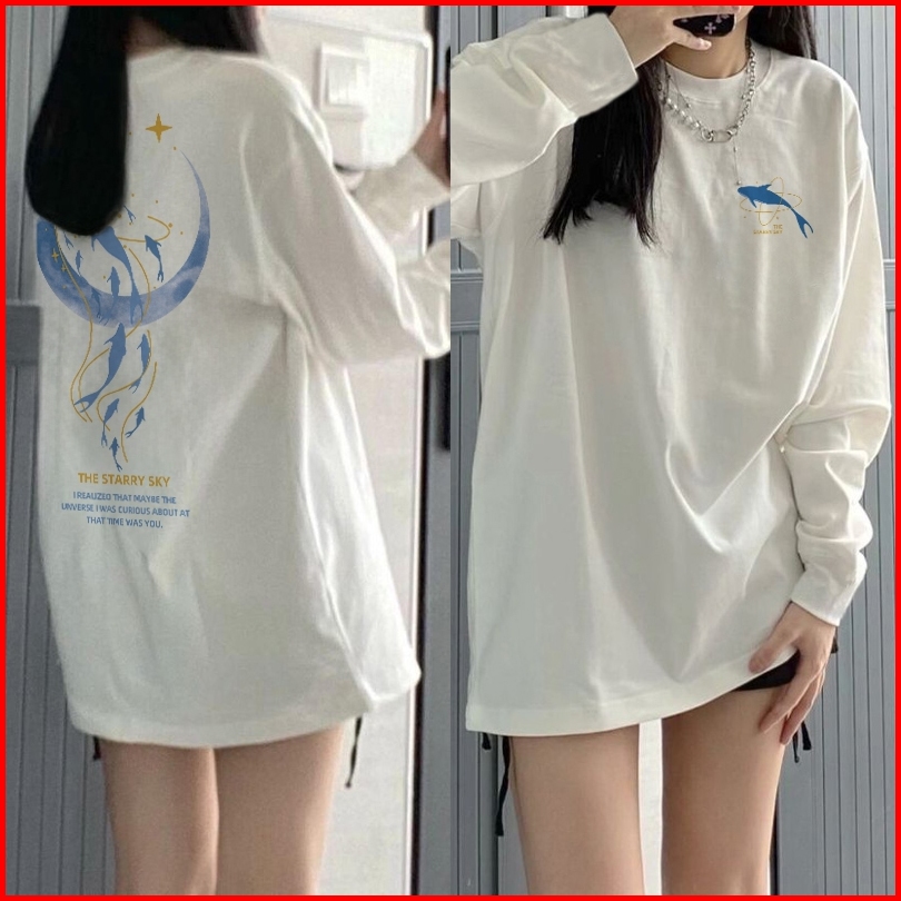 Kaos Oversize Lengan Panjang Atasan Wanita Dolphin Moon Baju Kaos Lengan Panjang Wanita Terbaru Kekinian Baju Kaos Wanit