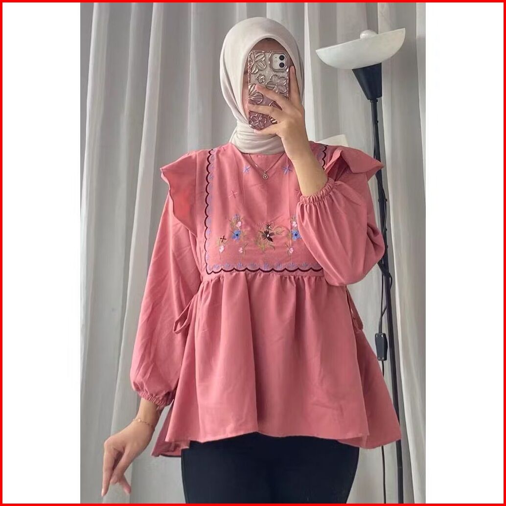 Nadine Blouse Wanita Terbaru Bahan Katun Mix Bordir Mewah Model Rompi Atasan Wanita Terbaru