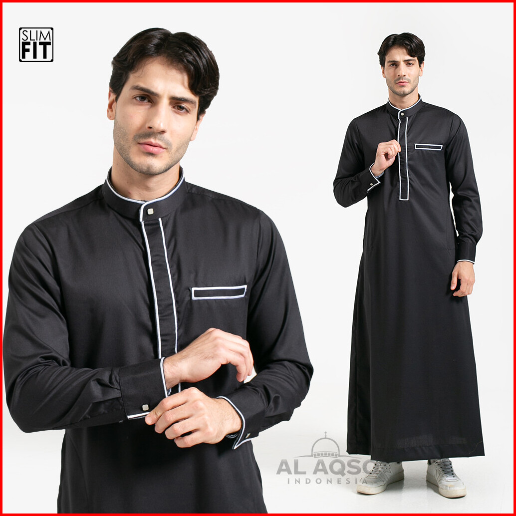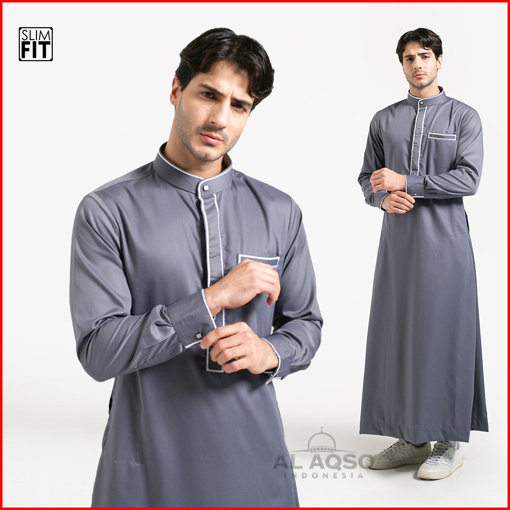 Al Aqso Fodu Jubah Printing Bordir Slimfit Thobe Gamis Pria Muslim Premium Dewasa Lengan Panjang Jubah Faris