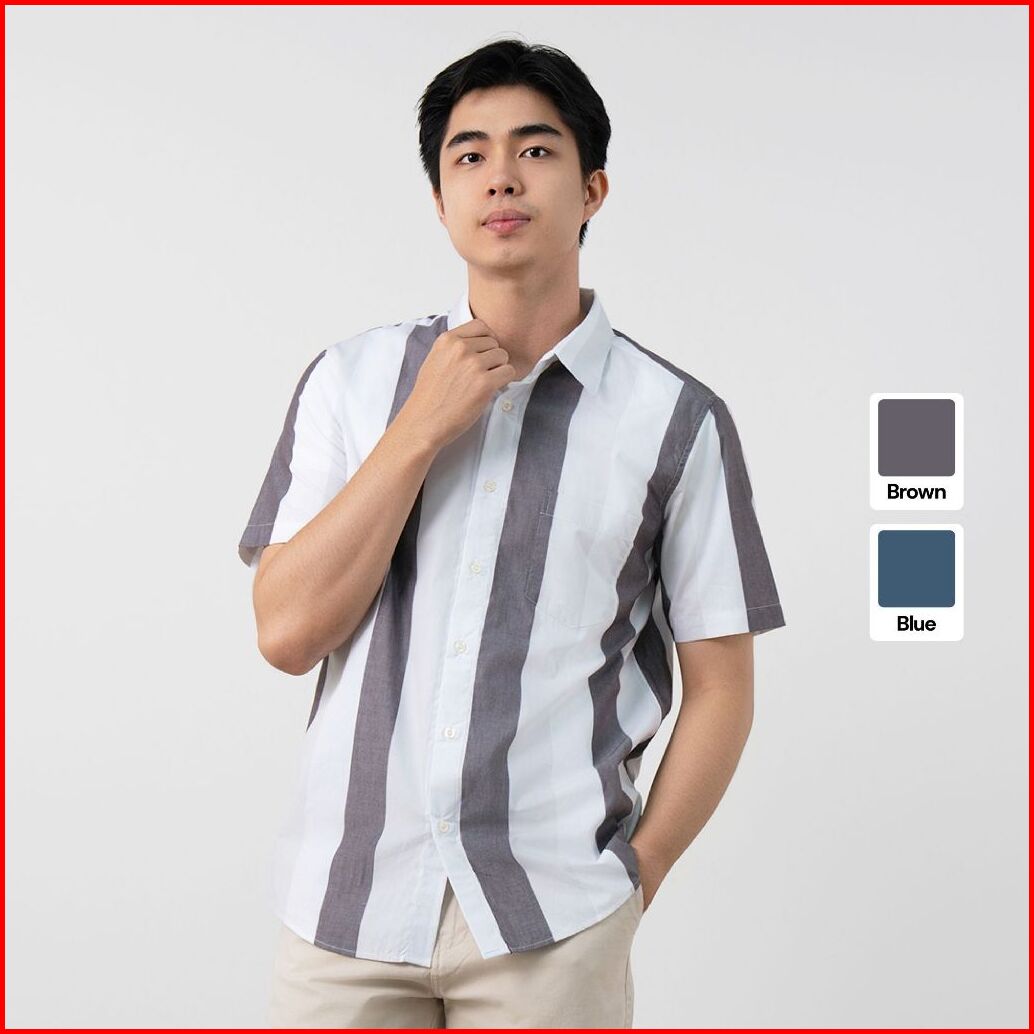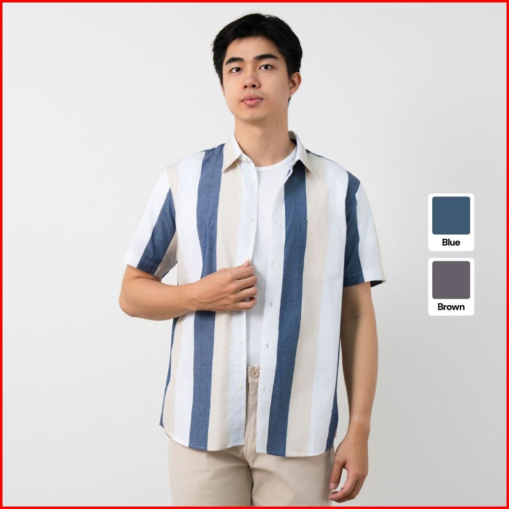 Men Clo Kemeja Salur Motif Garis Pendek Katun 73601