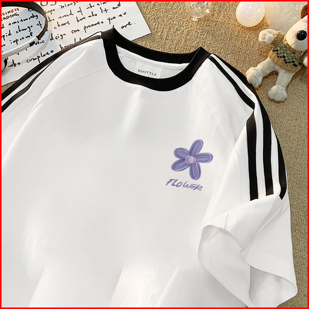 Forteid Cetakan Merek Trendi Retro Baju Oversize Pola Bunga Kartun Ungu Korean Style Kaos Longgar Baju 17 Agustus Wanita