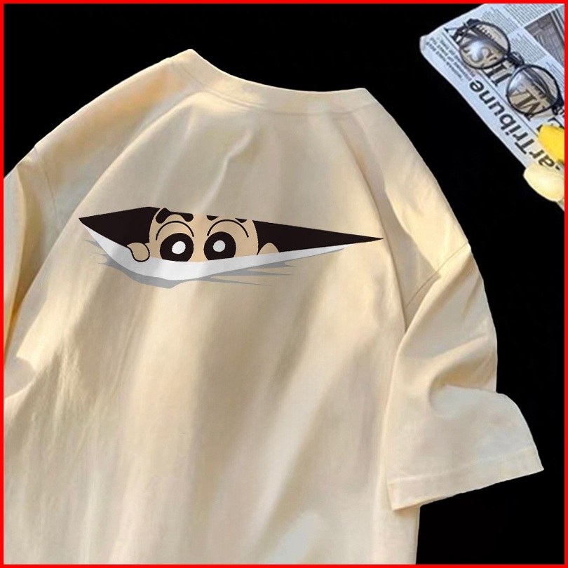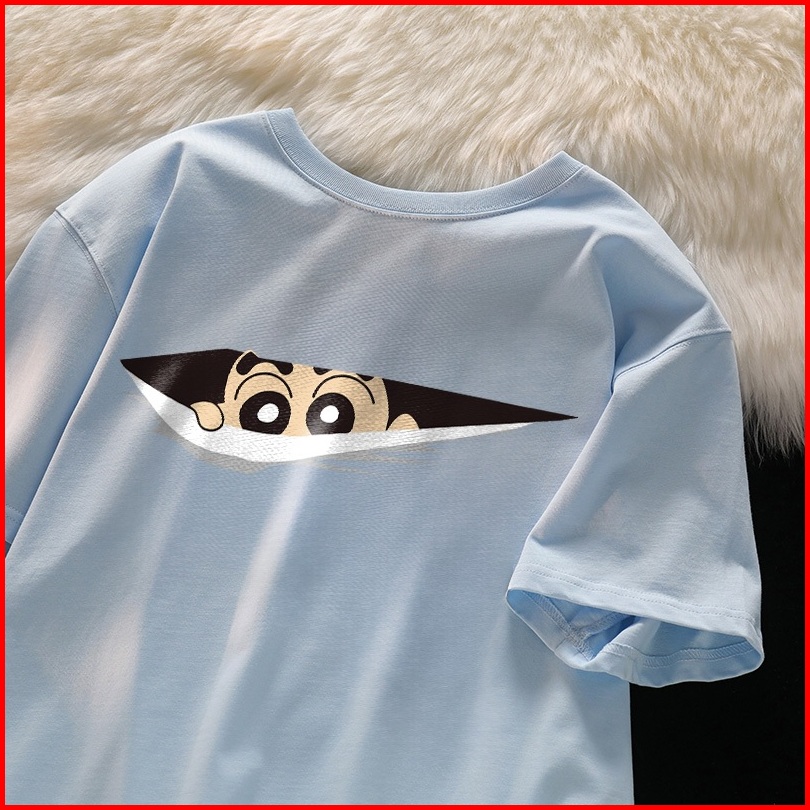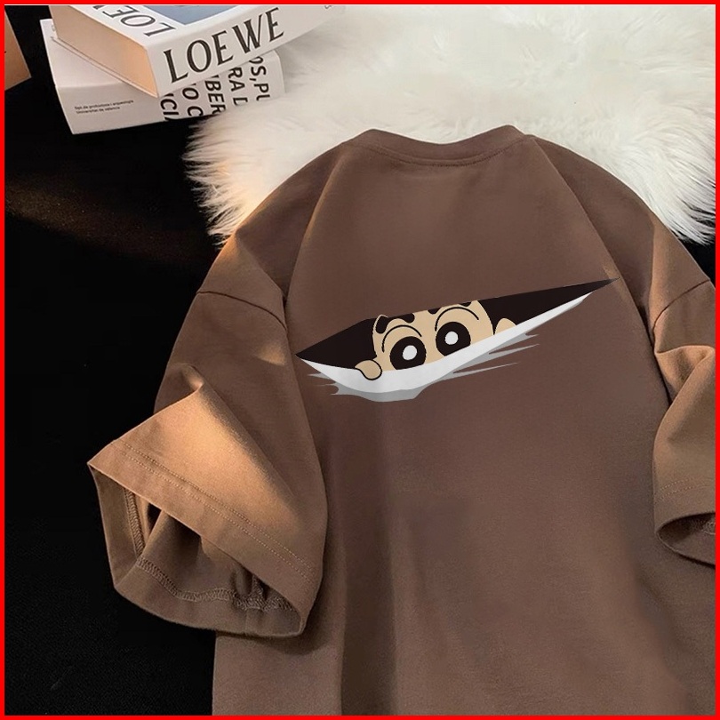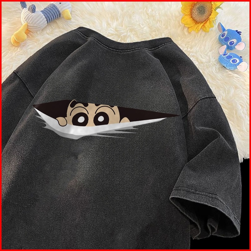 Forteid T-shirt Washed Oversize Cetakan Pola Shinchan Yang Lucu Baju Atasan Lengan Pendek Wanita Kaos Oversize Terbaru K