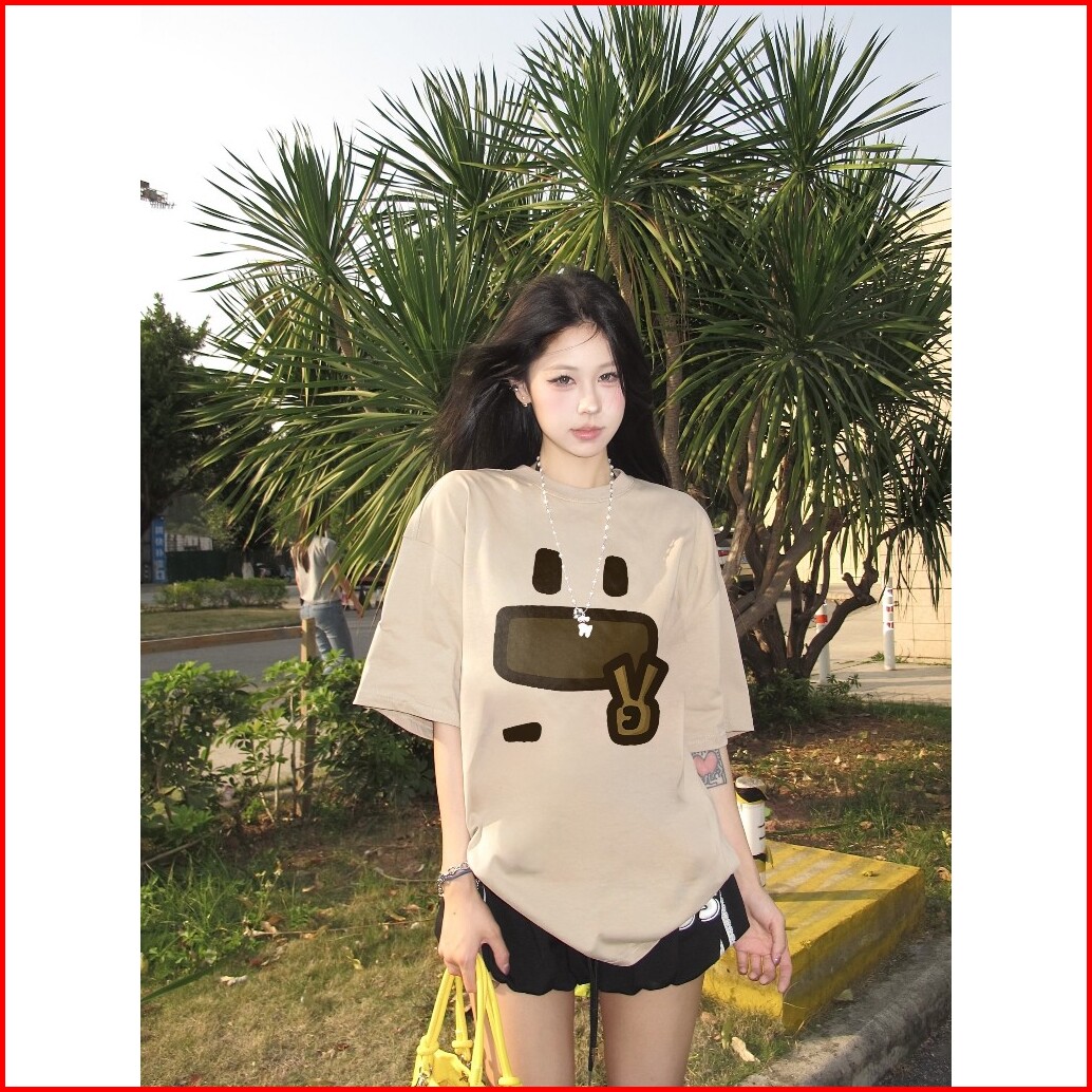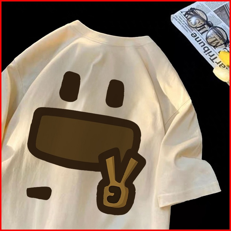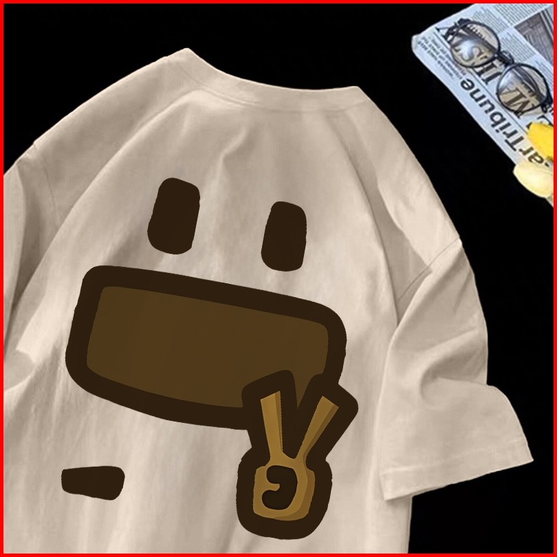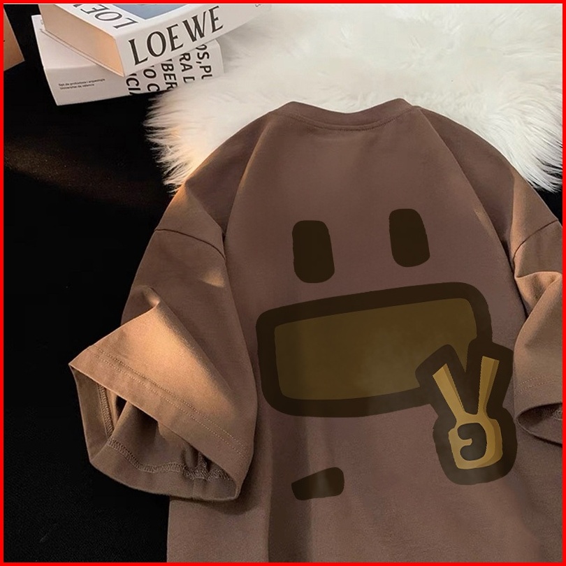 Forteid T-shirt Washed Oversize Cetakan Emoji Lucu Baju Atasan Lengan Pendek Wanita Kaos Oversize Terbaru Kaos Lucu Wani