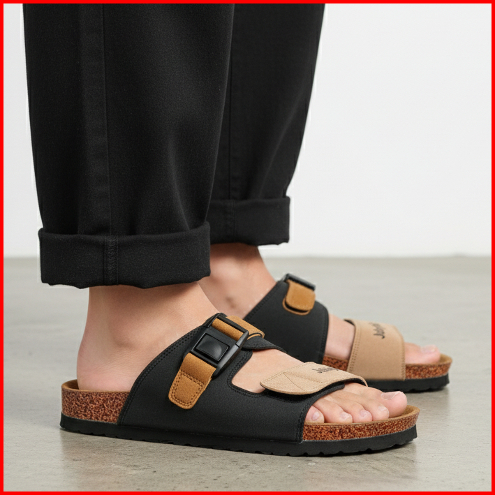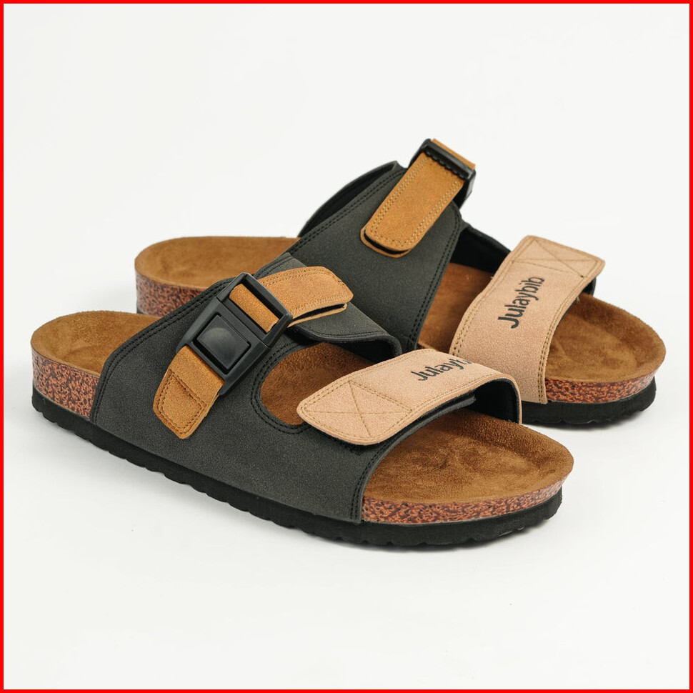 Julaybib Hamra - Black Sendal Slippers Casual Original Sandal Slip Pria Wanita Vegan Leather