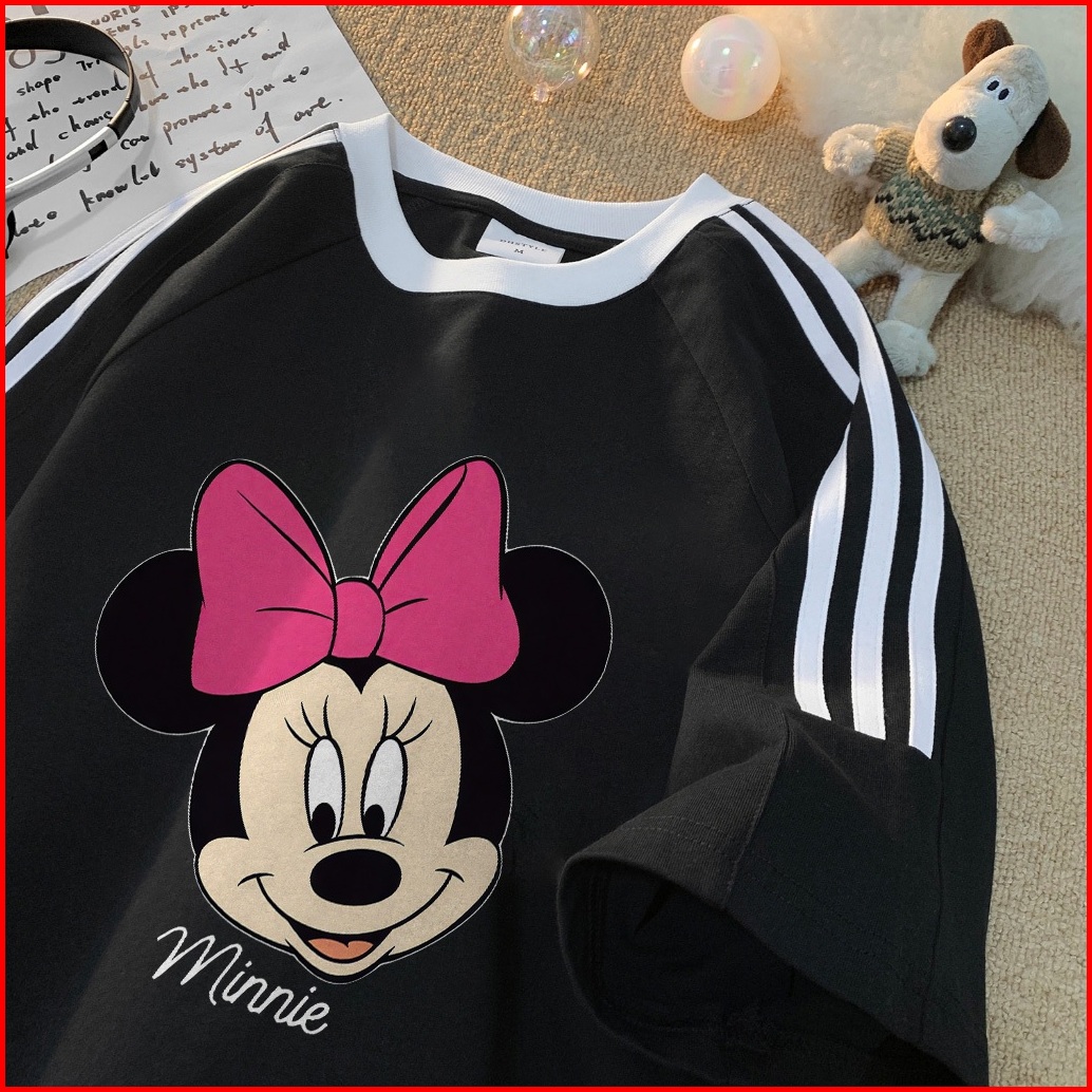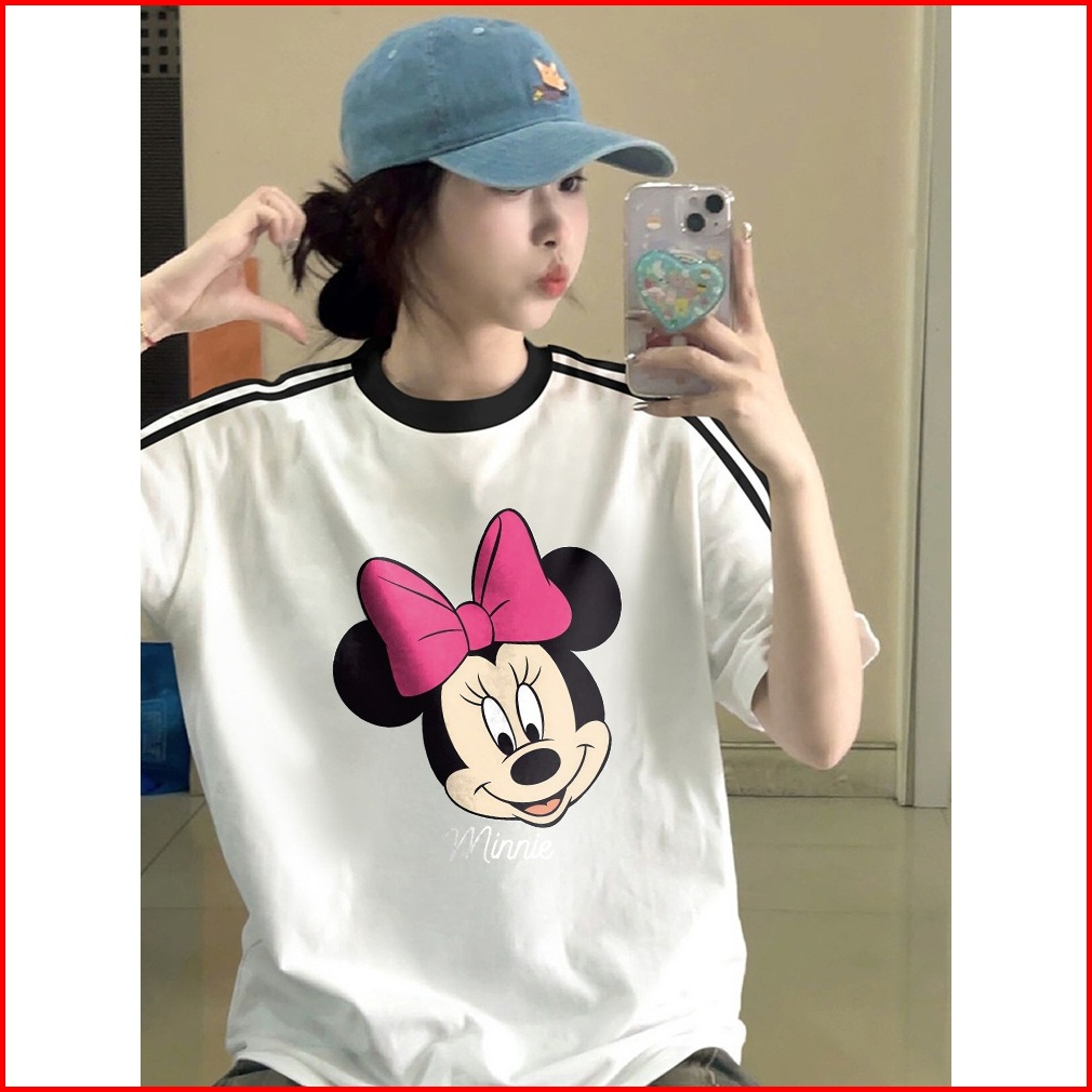 Forteid Cetakan Merek Trendi Retro Baju Oversize Cute Cetak Huruf Mickey Mouse Korean Style Kaos Longgar Kaos Merah Puti