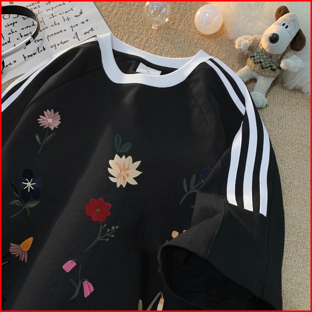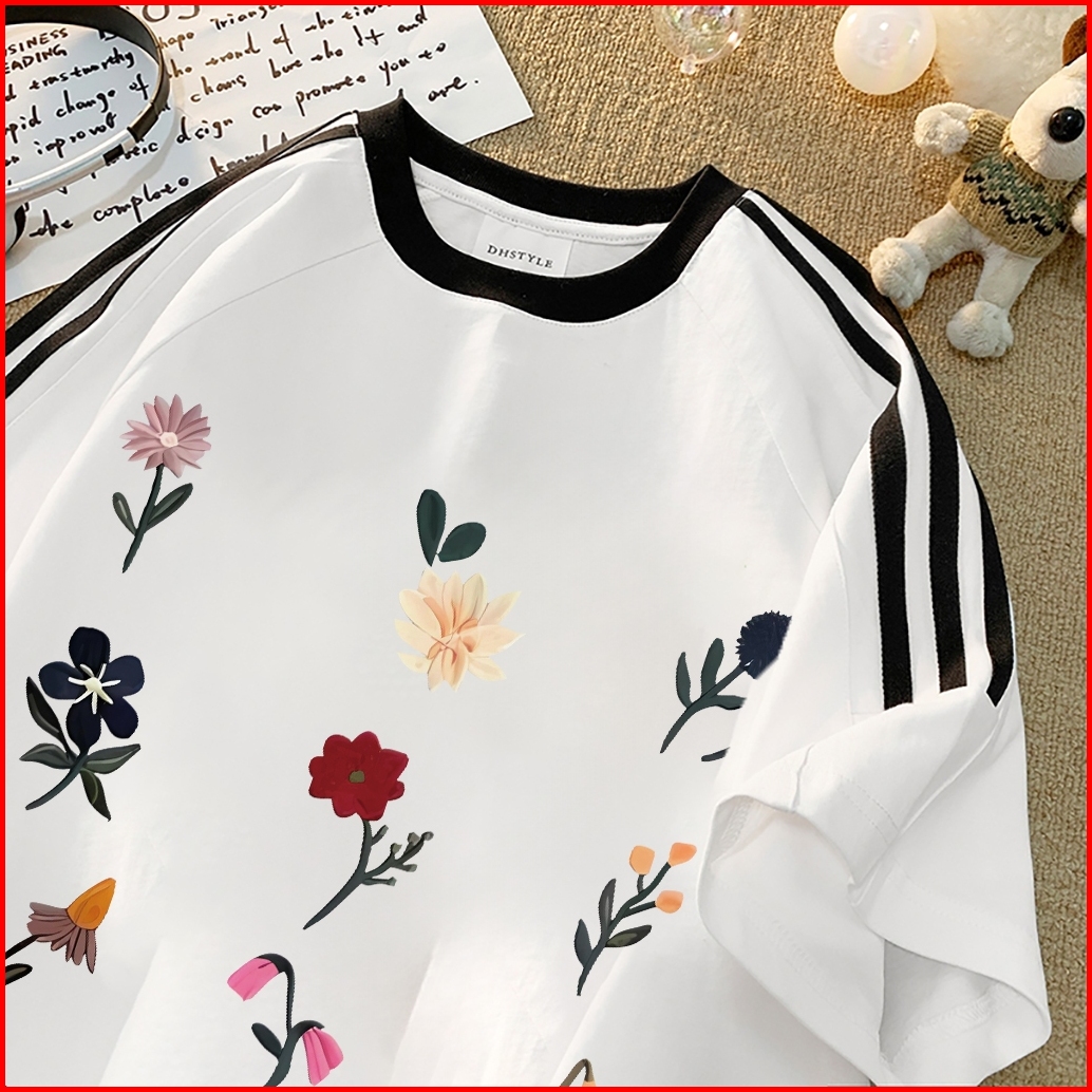 Forteid Cetakan Merek Trendi Retro Baju Oversize Cetakan Motif Bunga Korean Style Kaos Longgar Kaos Merah Putih Agustusa