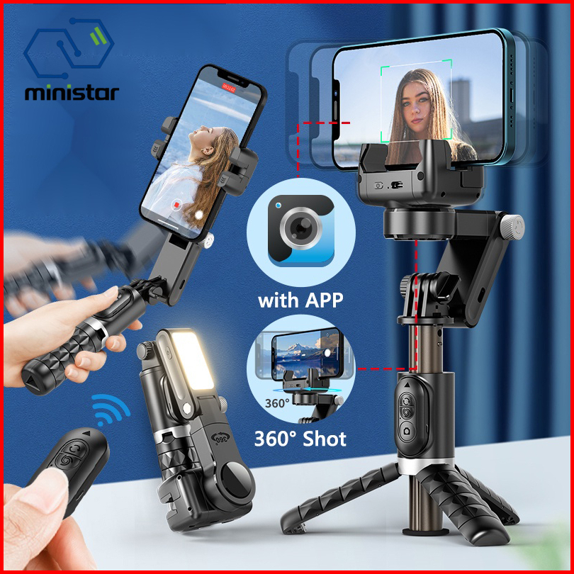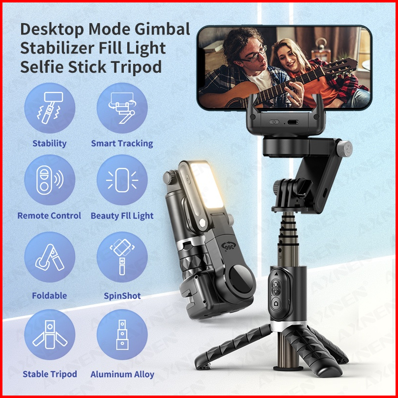 Stabilizer Gimbal Q18 Untuk Ponsel Dengan Tripod Selfie Dan Lampu Pengisistabilizer Gimbal 360 4 In 1 Dengan Remote Nirk