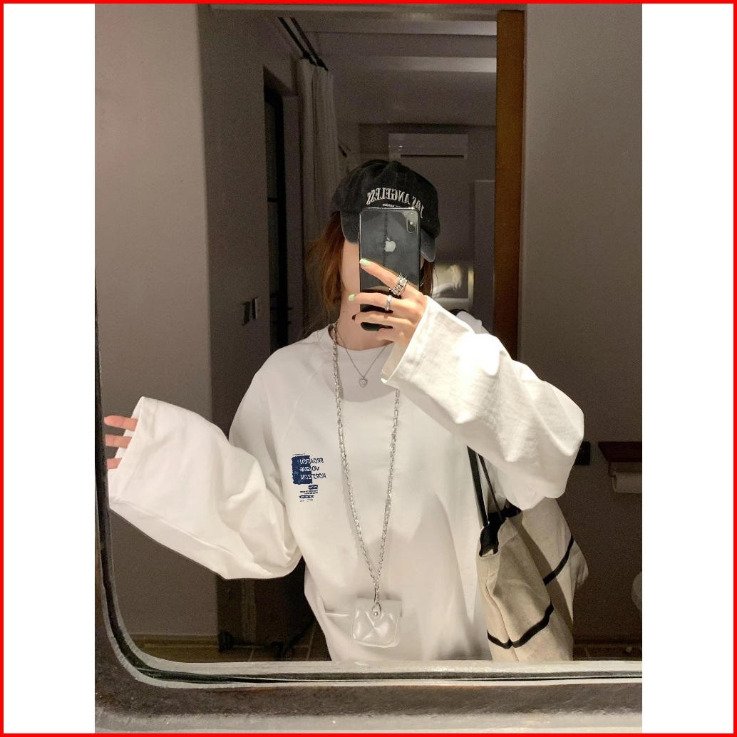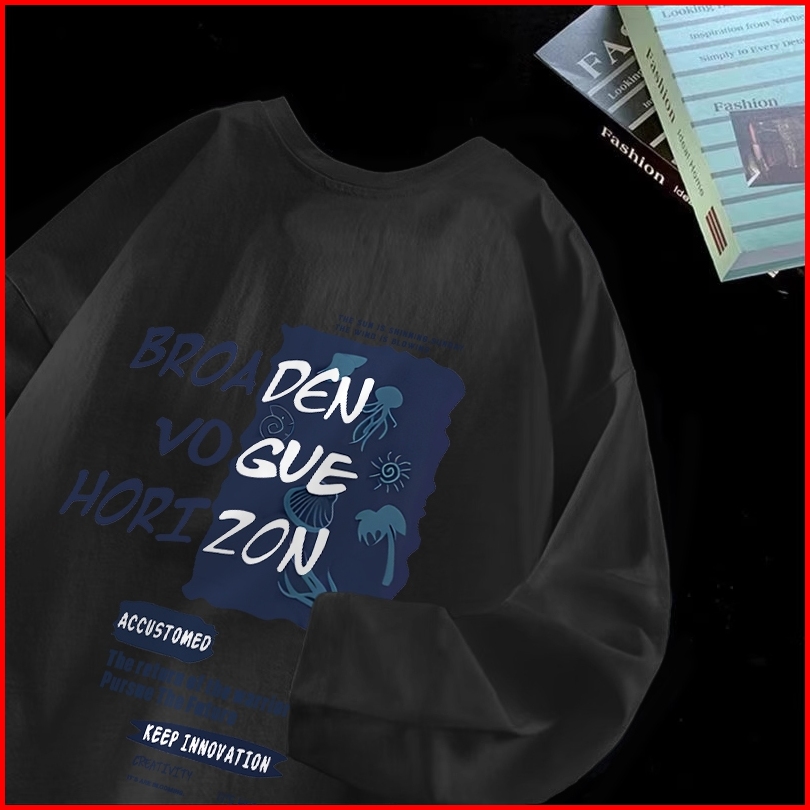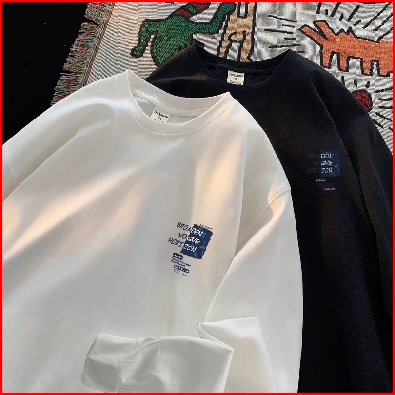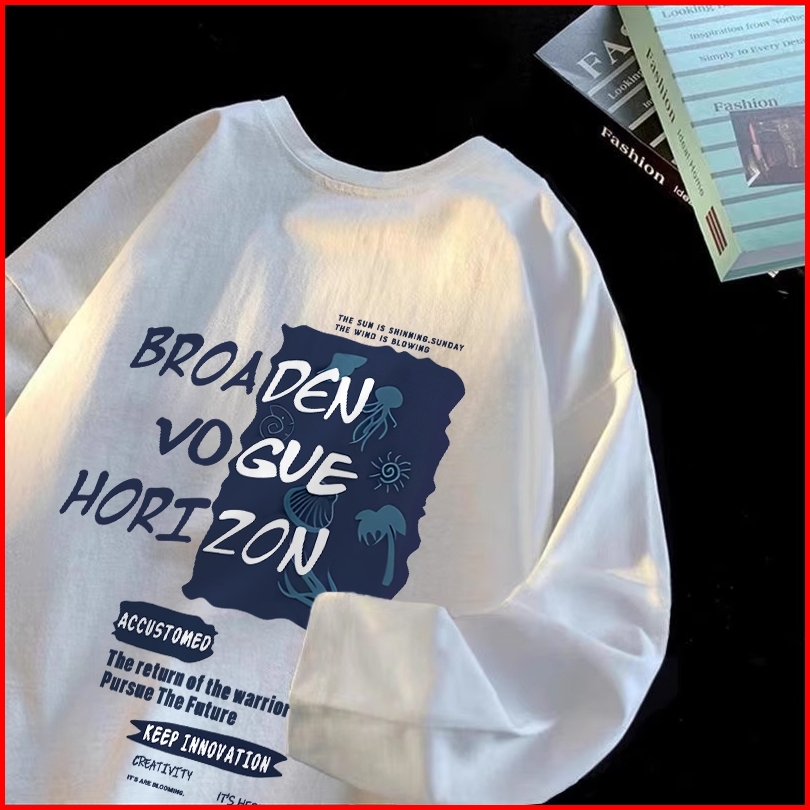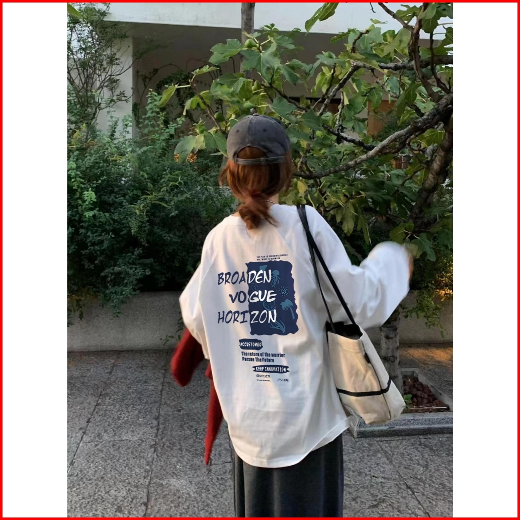Forteid Atasan Kaos Wanita Oversize Lengan Panjang Korean Style Cetak Broaden Vogue Horizon Baju Kaos Polos Cotton Combe