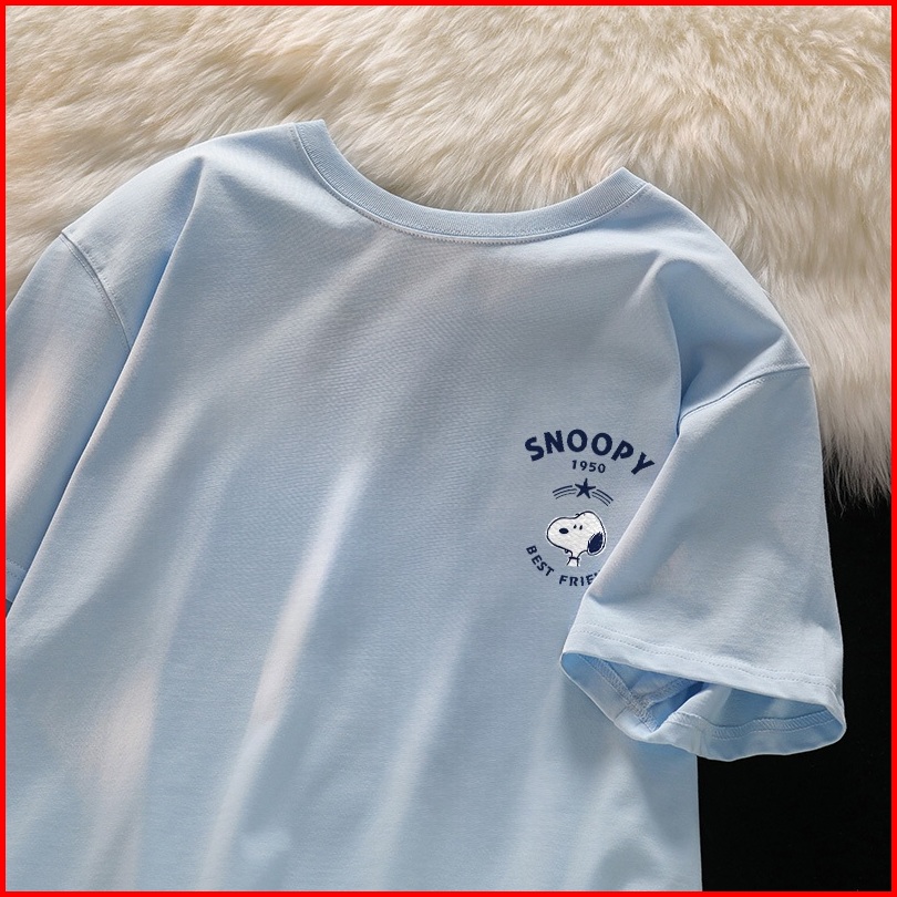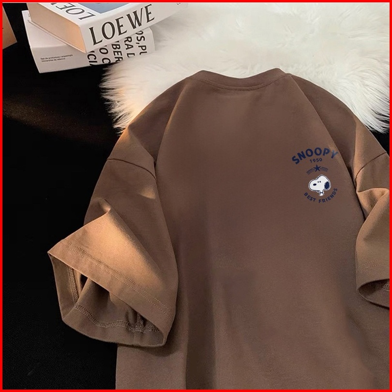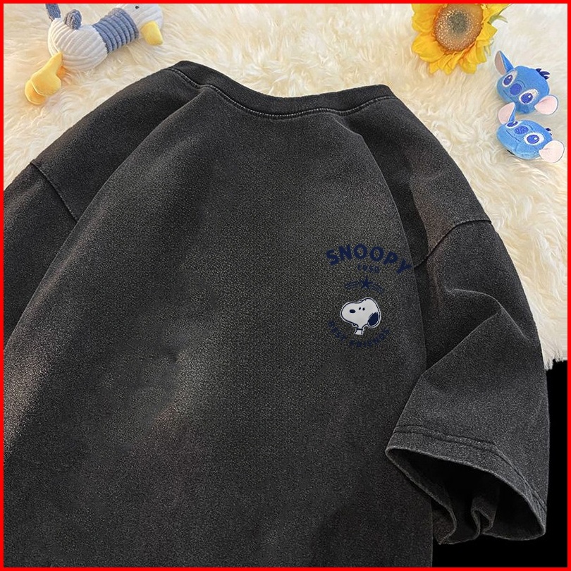 Forteid T-shirt Washed Oversize Pola Kecil Anjing Snoopy Kartun Baju Atasan Lengan Pendek Wanita Kaos Oversize Terbaru K
