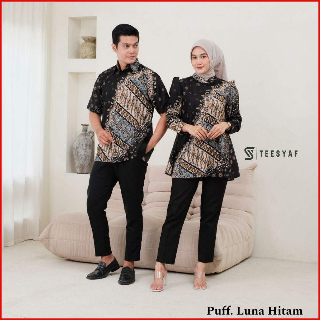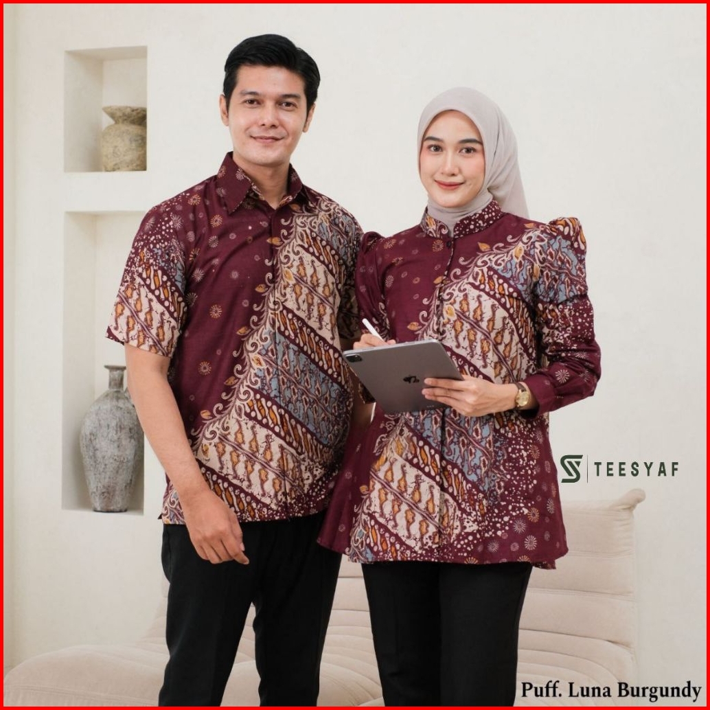 Teesyaf - An1-05 Luna Batik Couple Atasan Kerja Pria Wanita Seragam Kantor Motif Kby Luna Puffy