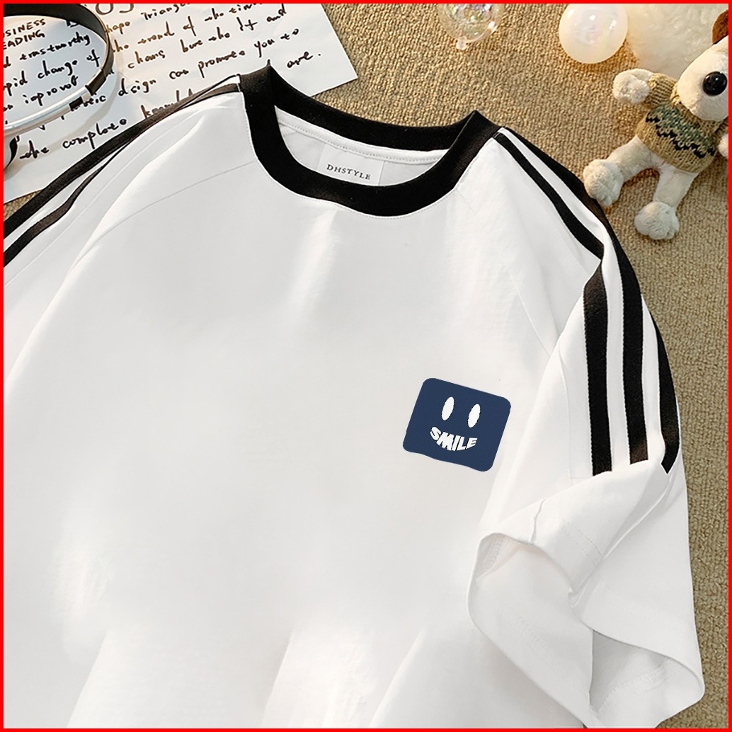 Forteid Cetakan Merek Trendi Retro Baju Oversize Cetak Pola Ekspresi Lucu Korean Style Kaos Longgar Kaos Merah Putih Agu