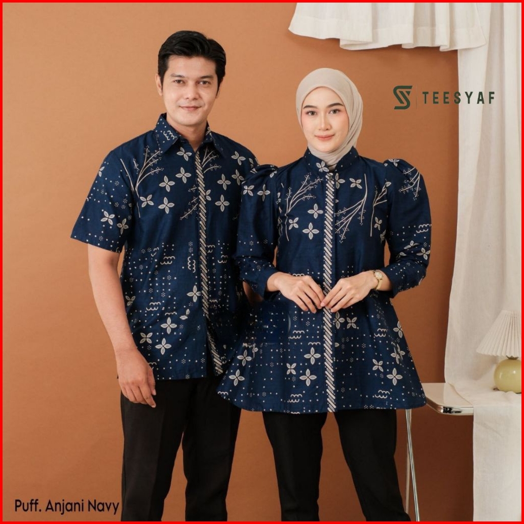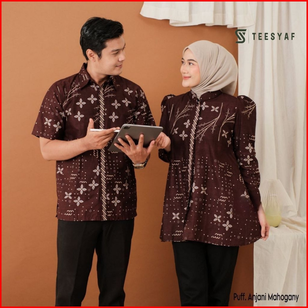 Teesyaf- An1-06 Baju Batik Couple Atasan Kerja Kantor Pria Wanita Seragam Motif Puffy Silang Anjani