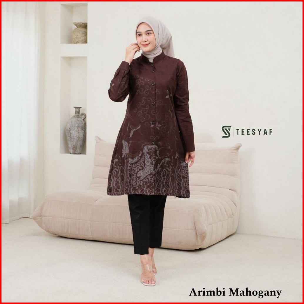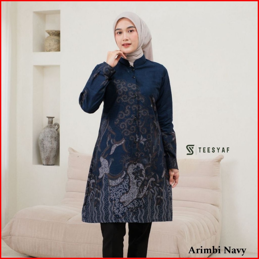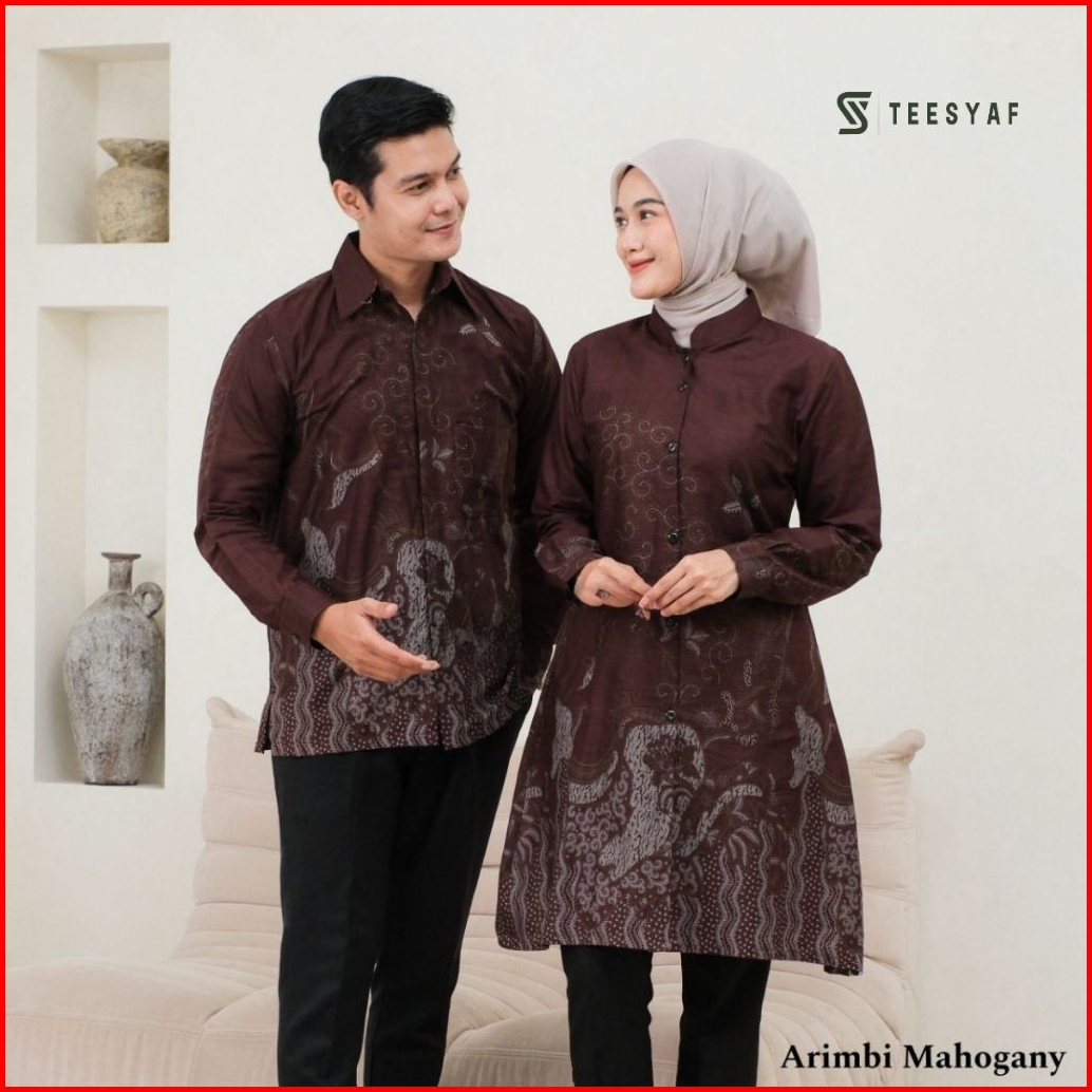 Teesyaf - An1- 12 Tunik Batik Couple Atasan Seragam Kantor Pria Wanita Lengan Panjang Motif Arimbi