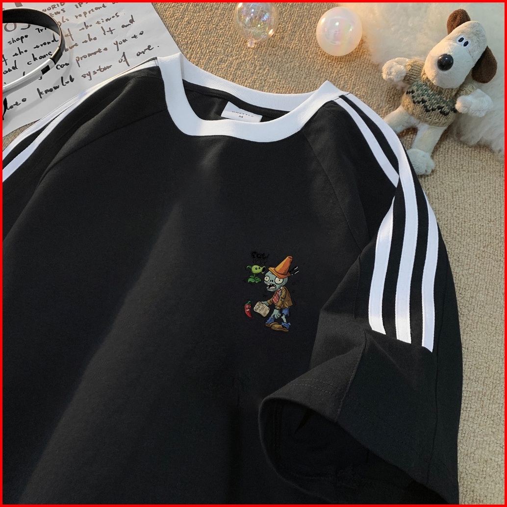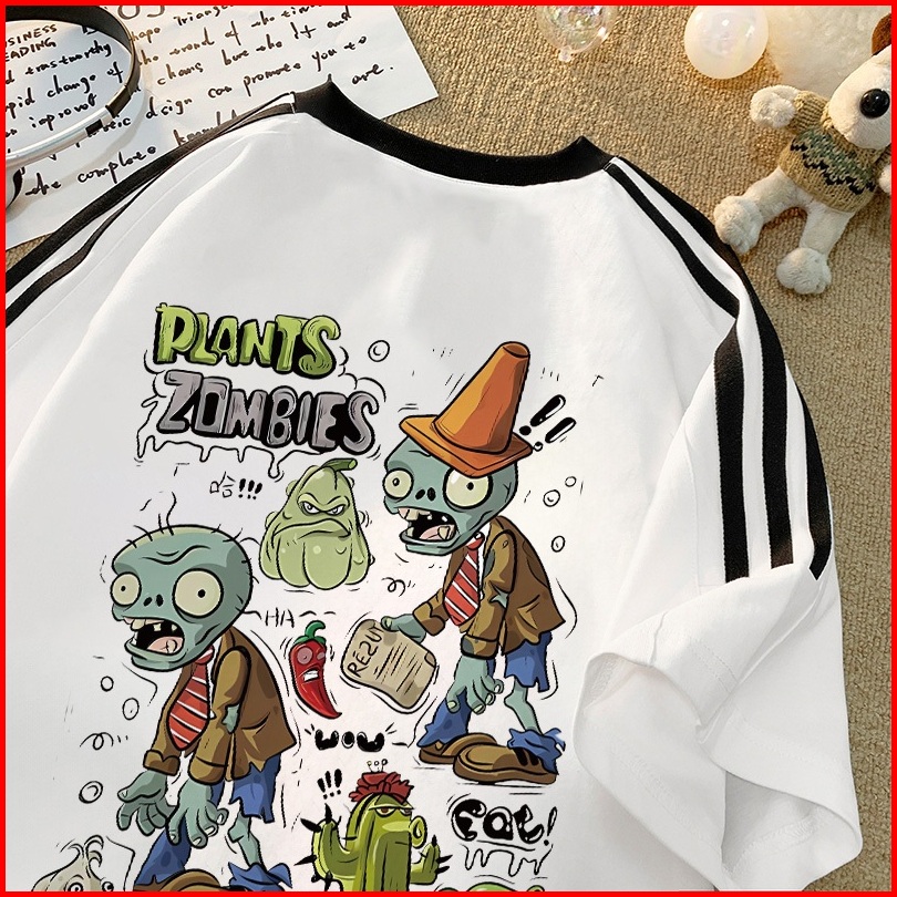 Forteid Cetakan Merek Trendi Retro Baju Oversize Tanaman Vs Zombi Korean Style Kaos Longgar Kaos Merah Putih Agustusan K